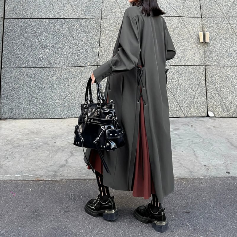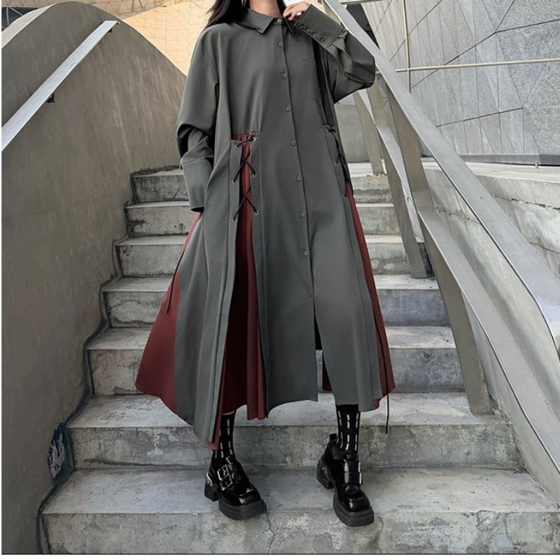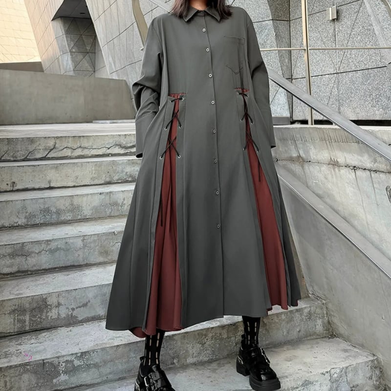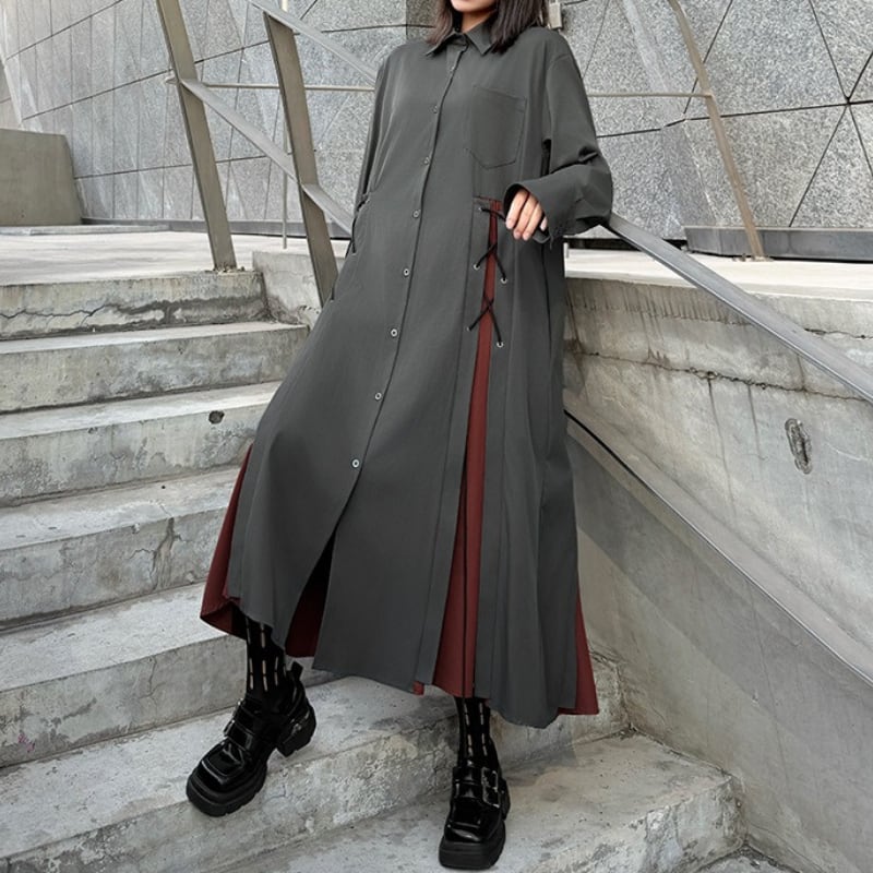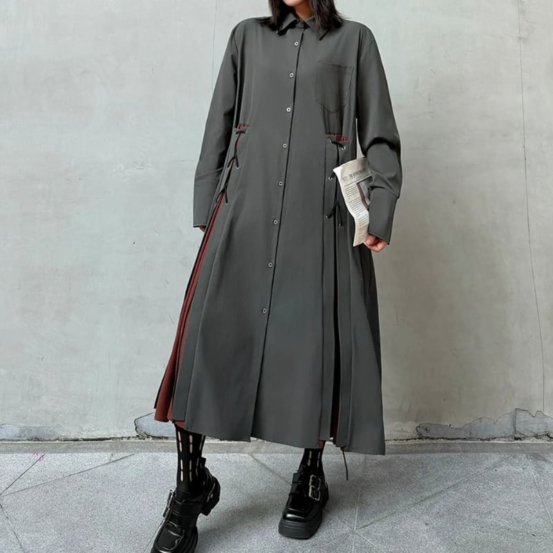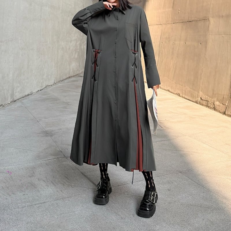 パッチポケット 長袖 マキシ丈 シャツワンピース 1color ON0999