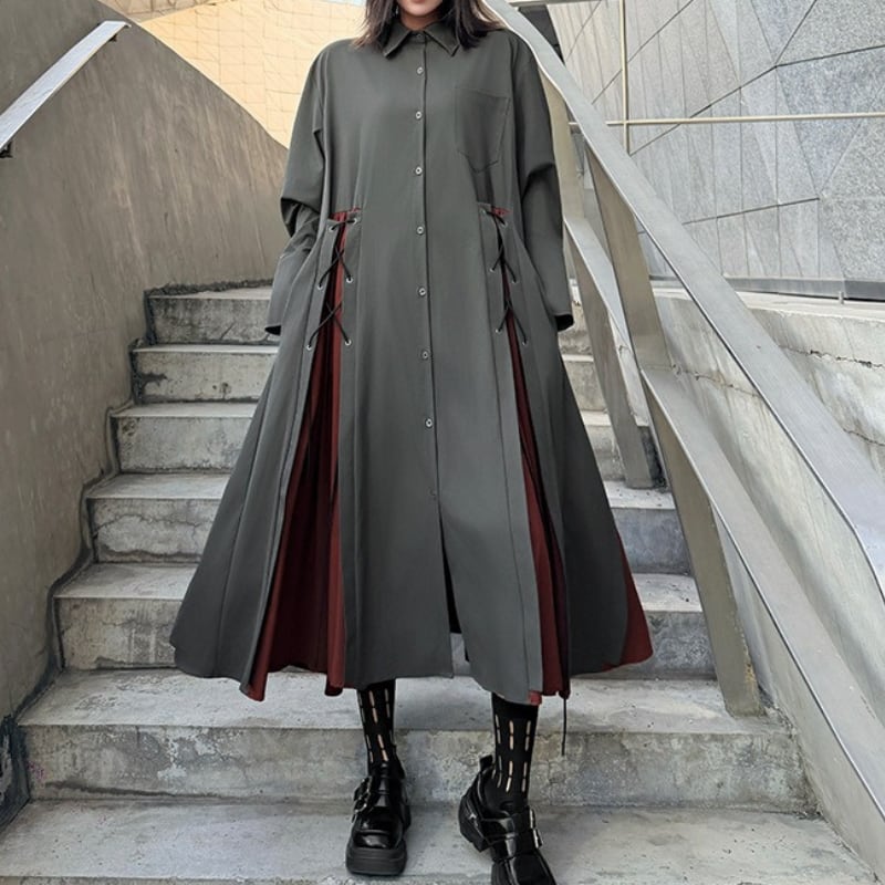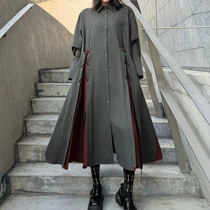 マキシ丈でゆったりとしたシルエットが魅力的なシャツワンピース。