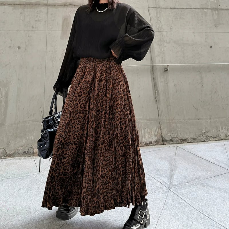 プリーツ マキシ丈 アニマル柄 スカート 1color SK0335
