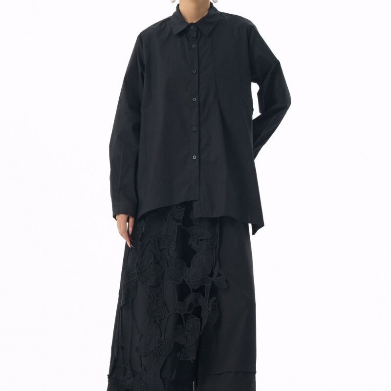 ボタンフロント ヒップ丈 長袖 シャツワンピース 3color BL0570