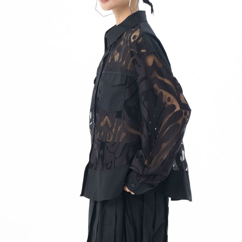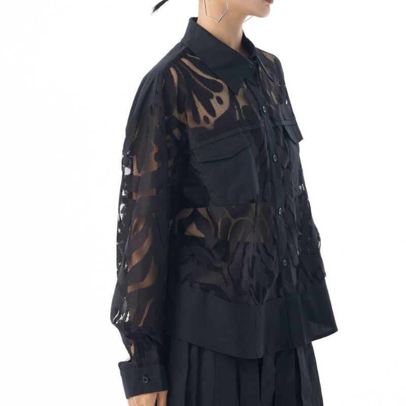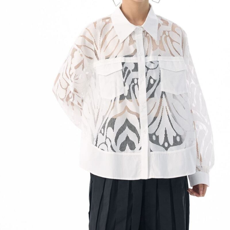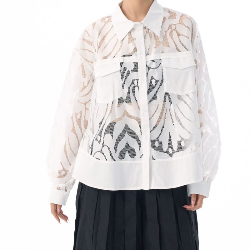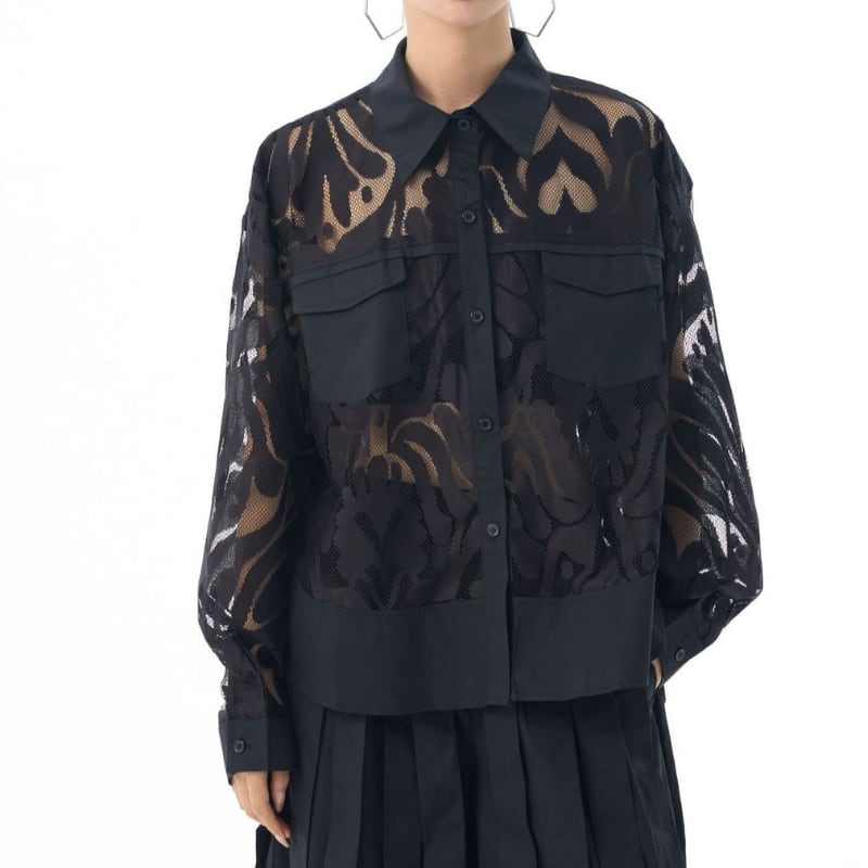 パッチポケット 長袖 クロップド シャツカラー シャツ 2color BL0571