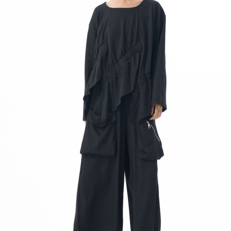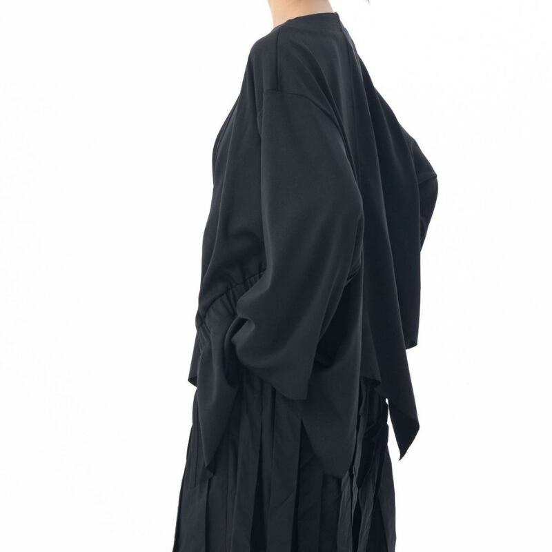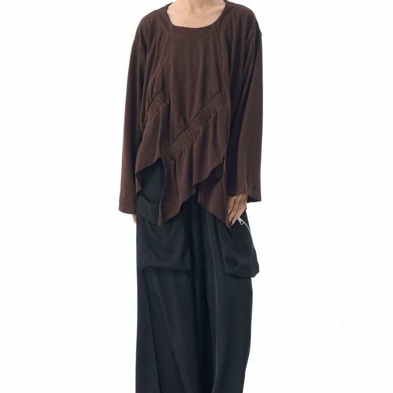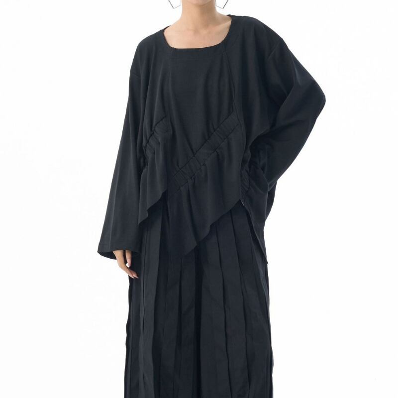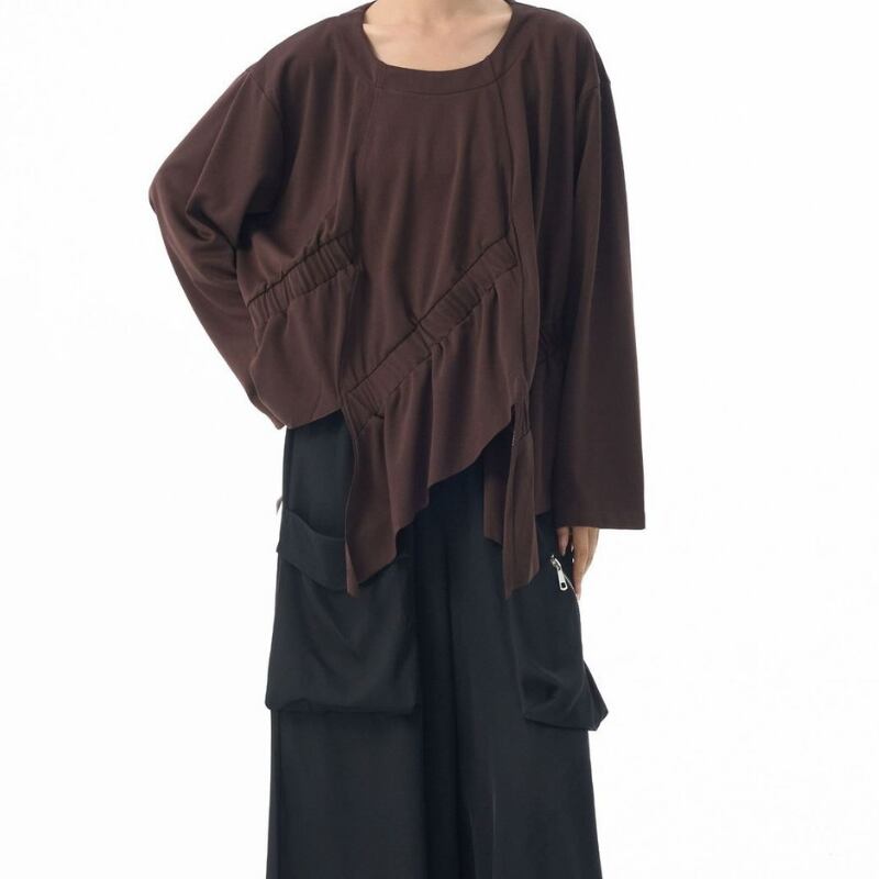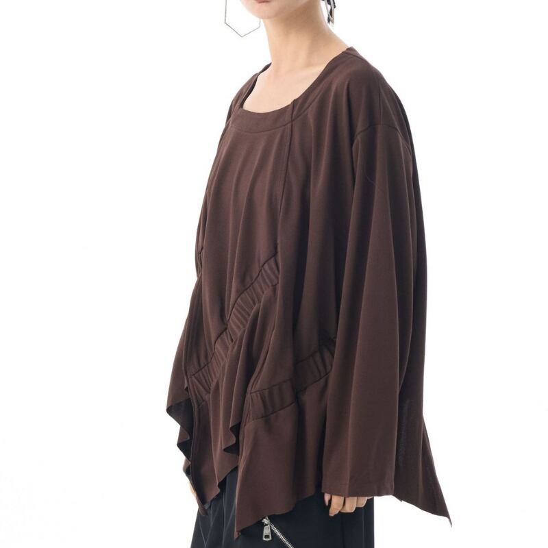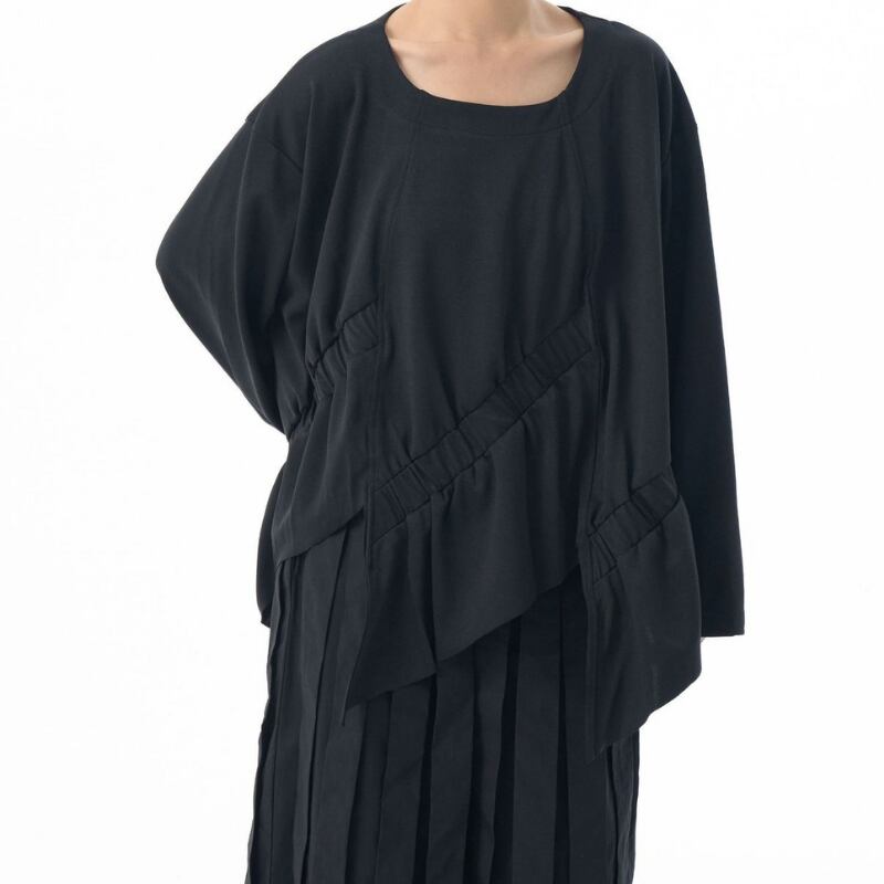 ゆったりオーバーサイズの長袖カットソー。アシンメトリーな裾とドローストリングのデザインが、モードな印象を与えます。
