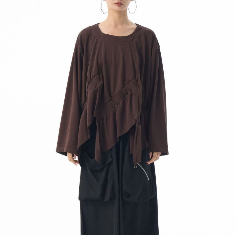 ドローストリング アシンメトリー 長袖 オーバーサイズ カットソー 2color PU0479