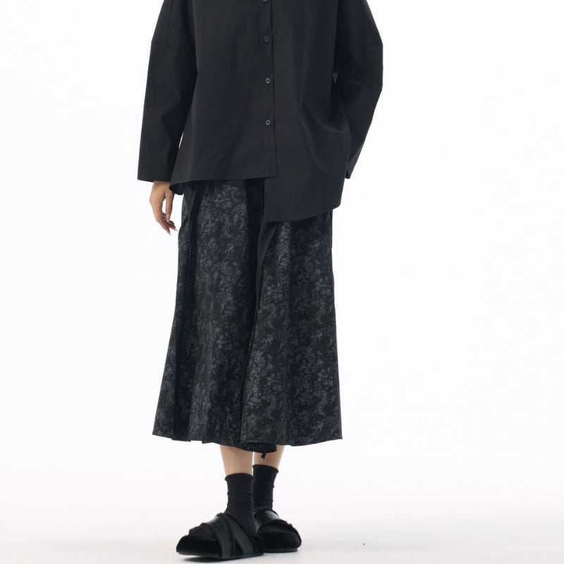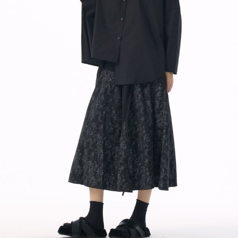 切替デザイン Aライン ミモレ丈 スカート 1color SK0337
