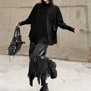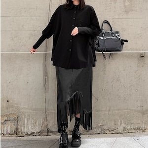 ボタンフロント パッチポケット 長袖 オーバーサイズ シャツ 1color BL0581