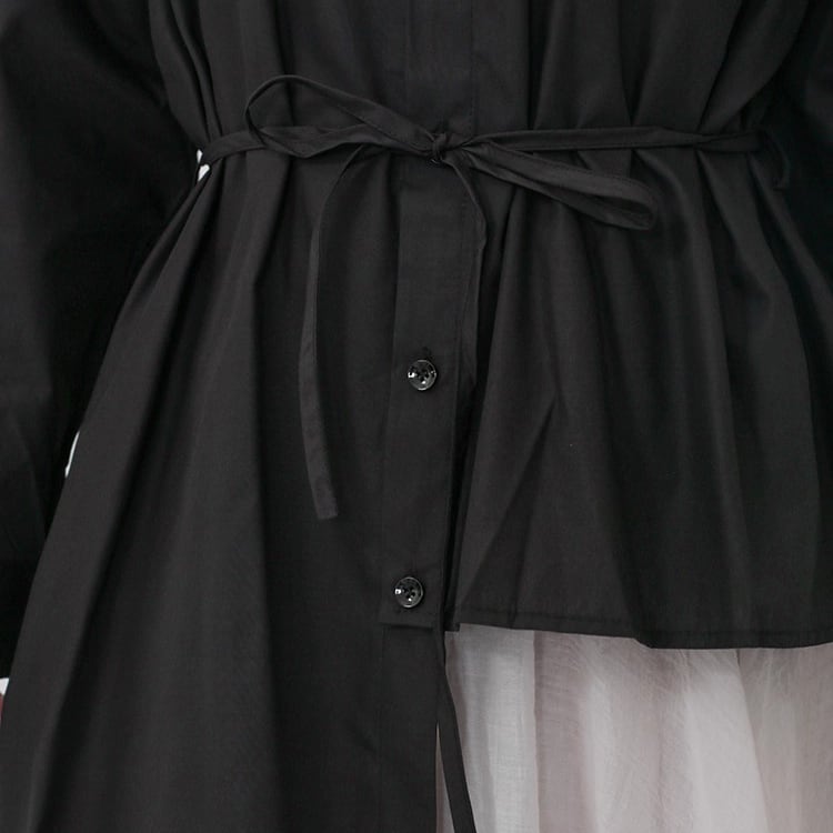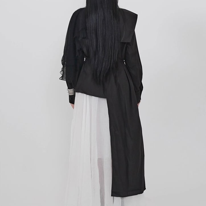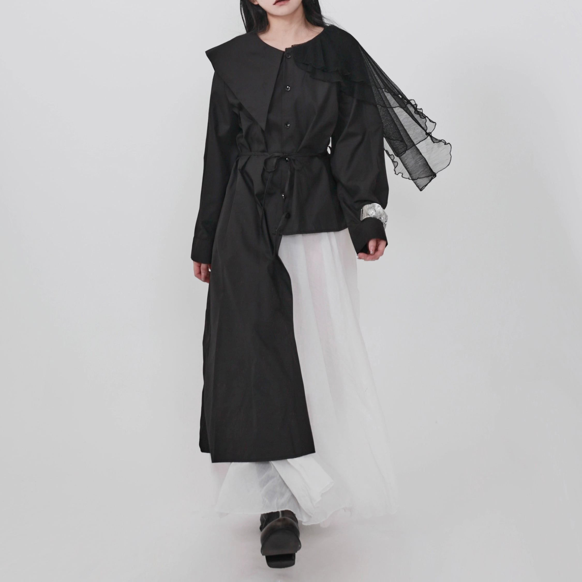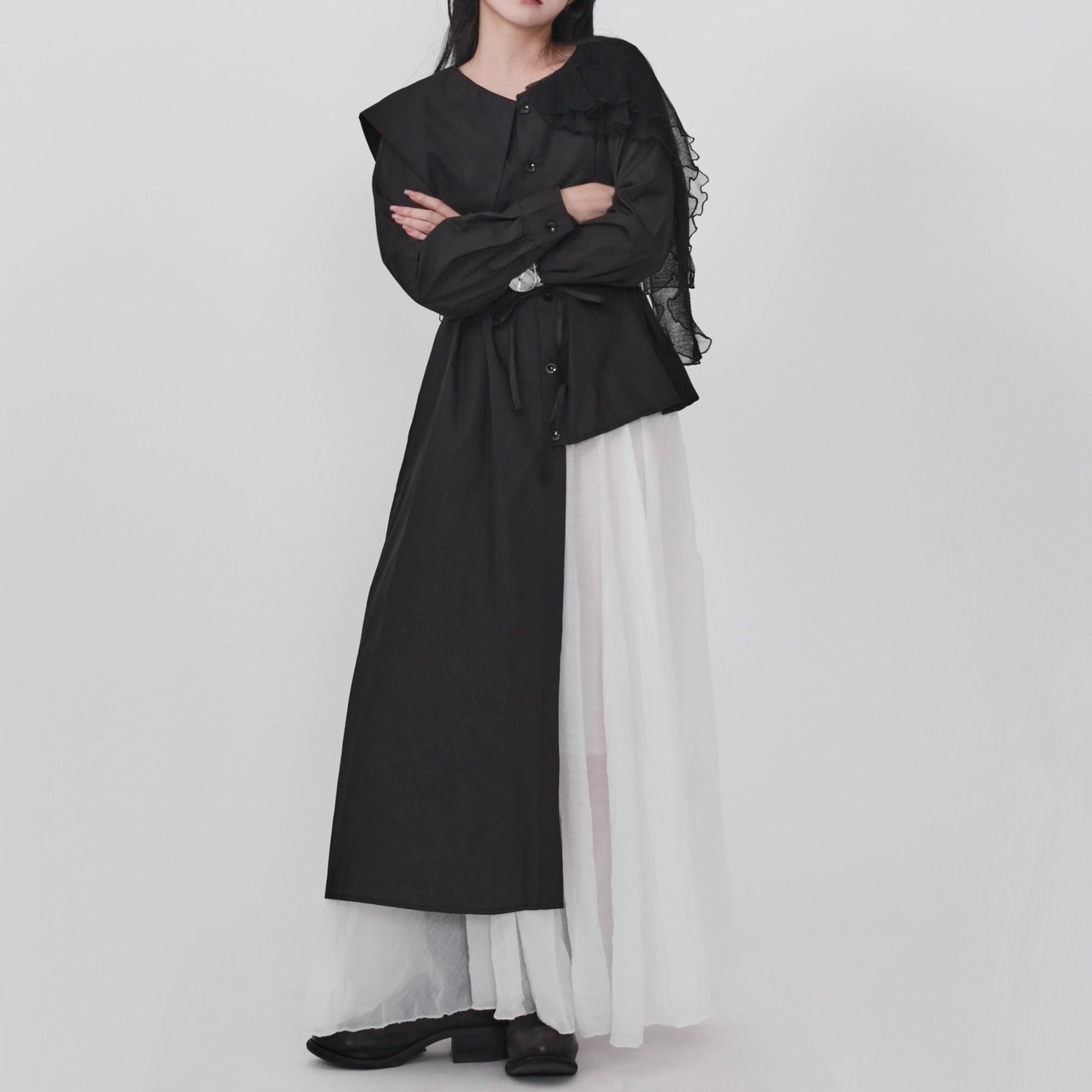 長袖 オープンカラー アシンメトリーマキシ丈 シャツワンピース 1color BL0537