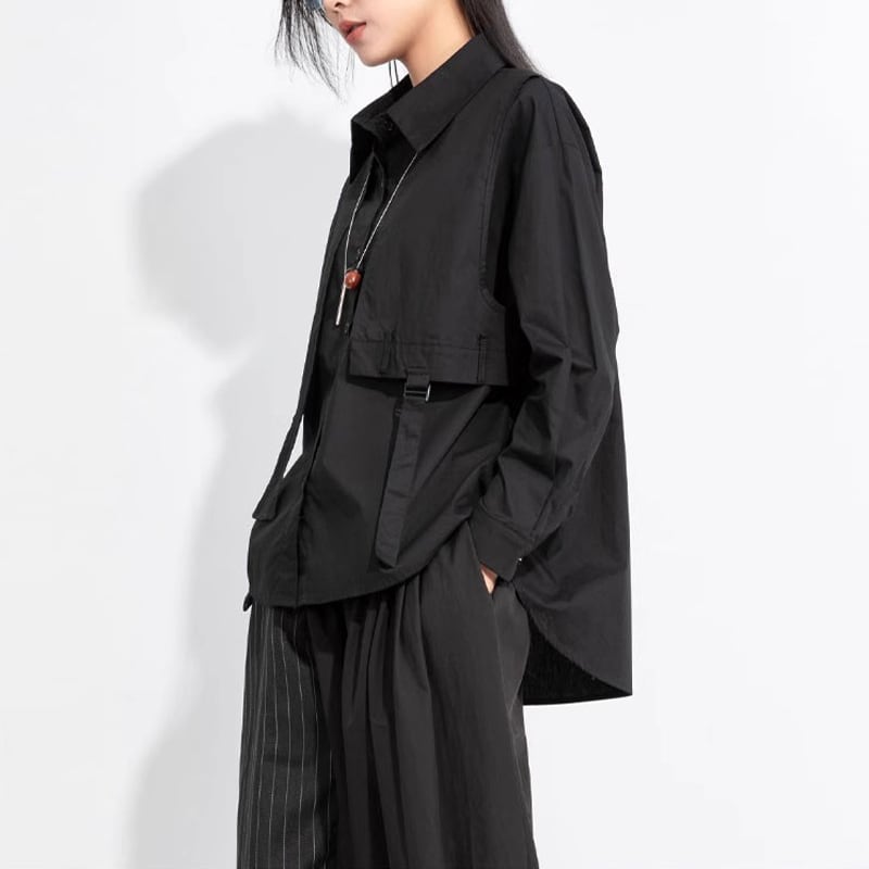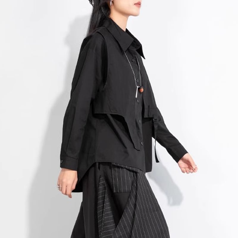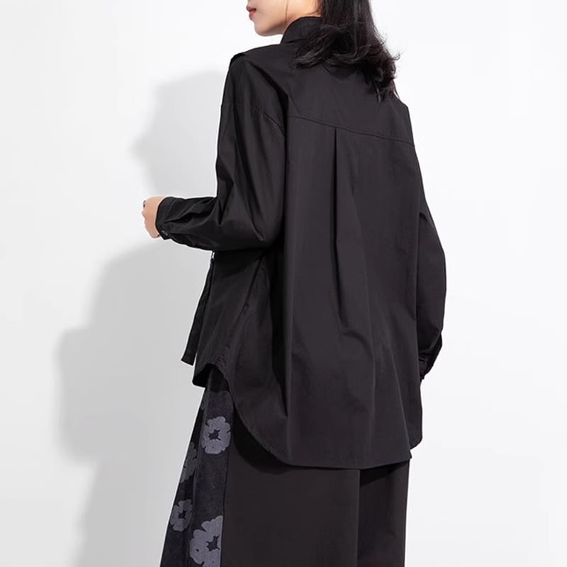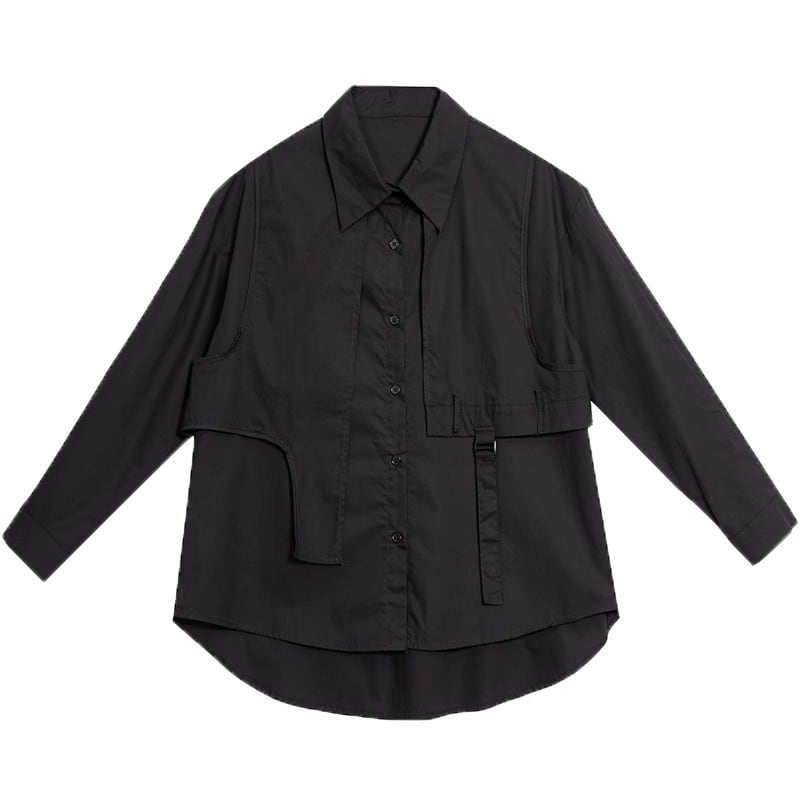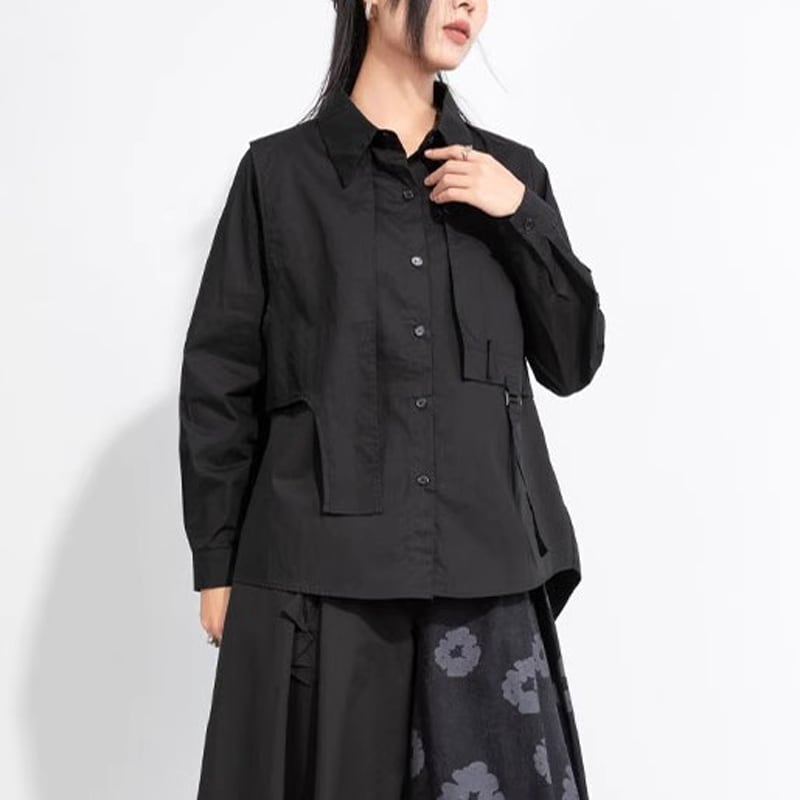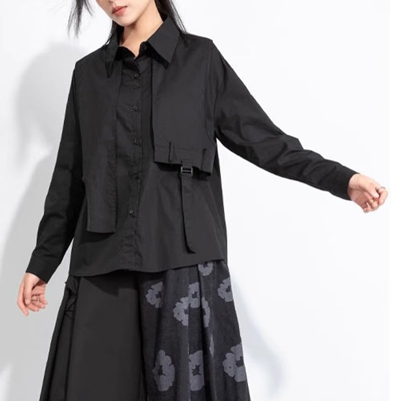 シャツカラー 長袖 アシンメトリーデザイン シャツ 1color BL0550