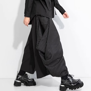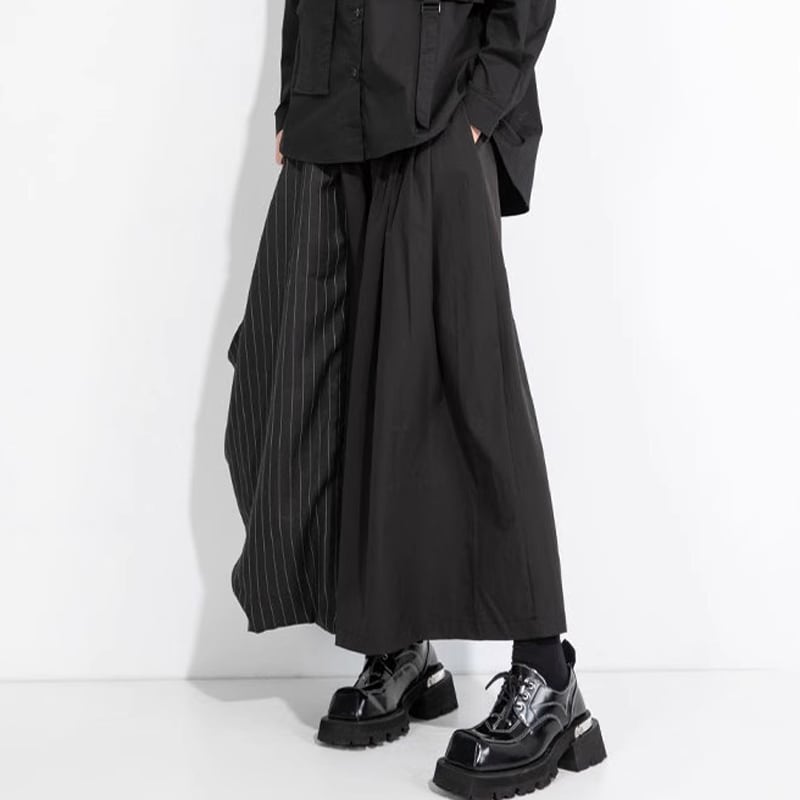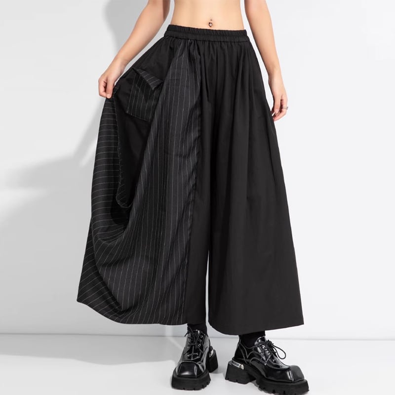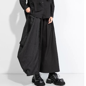 ストライプ切替 ワイド クロップド丈 パンツ 1color PT0420