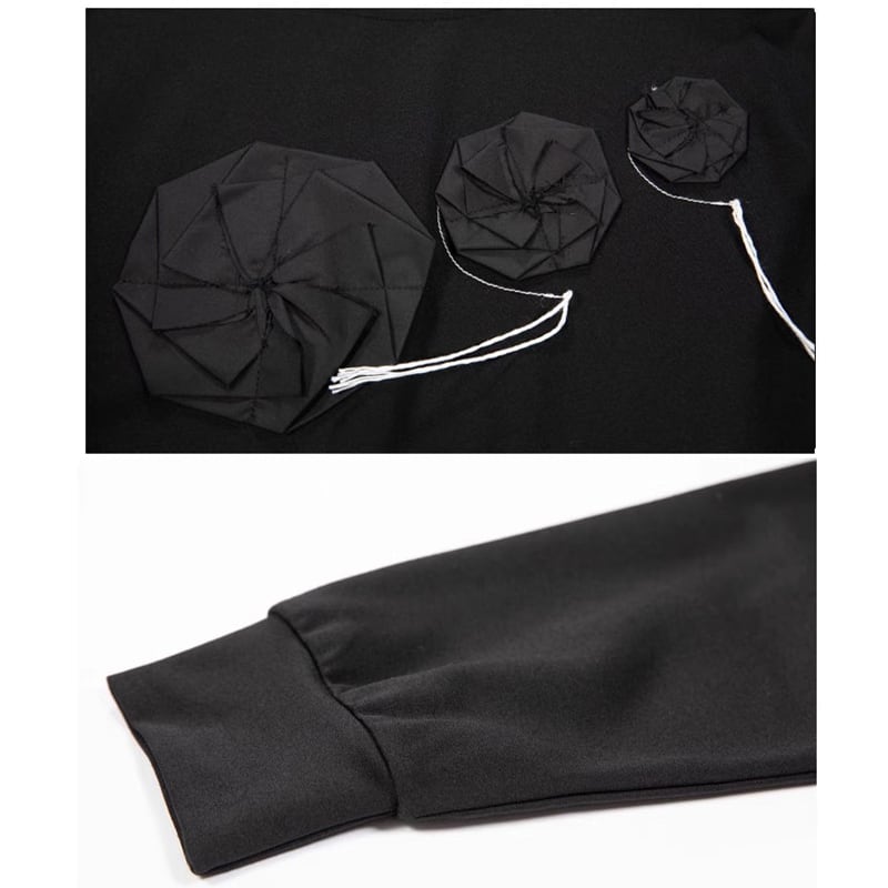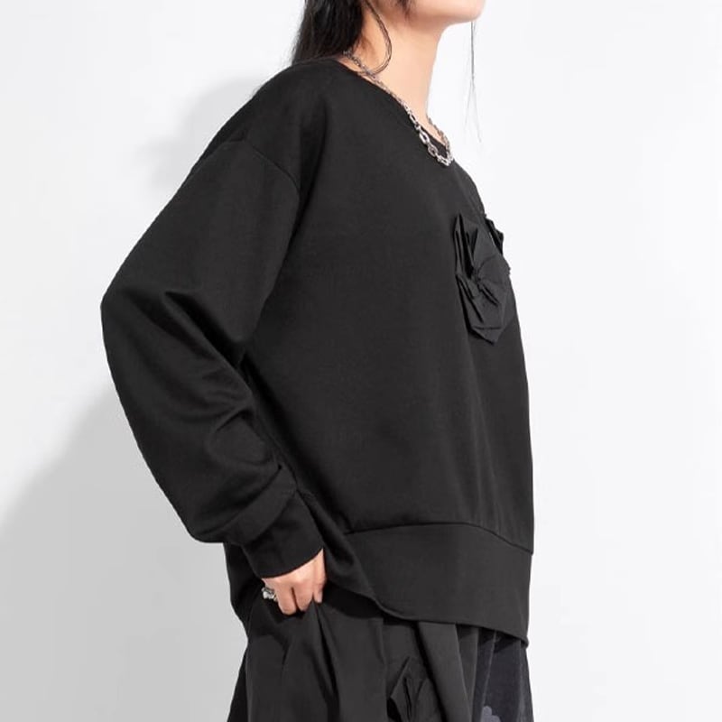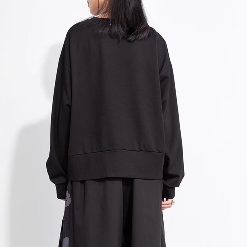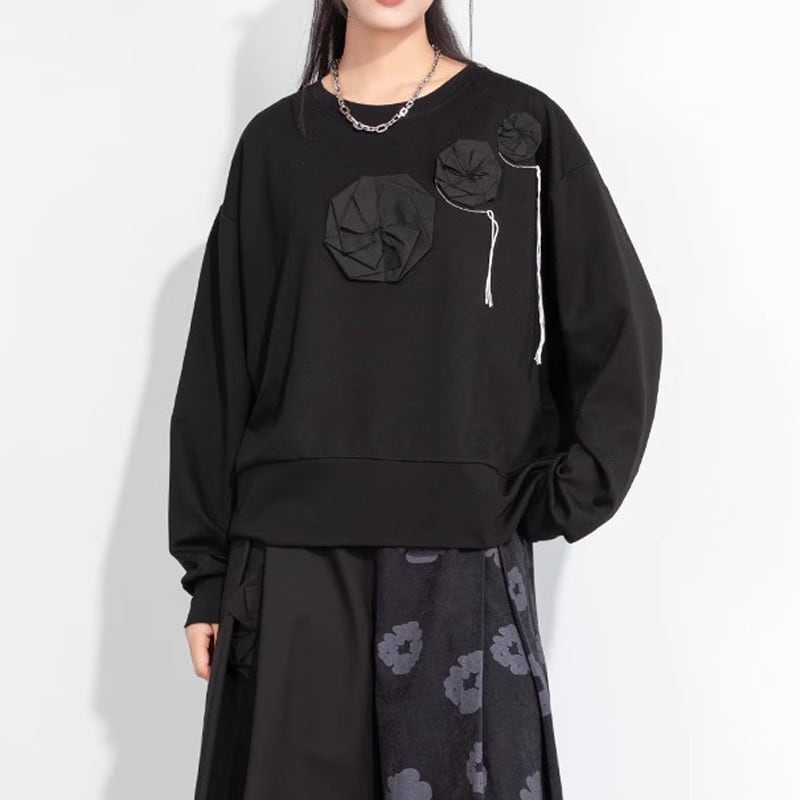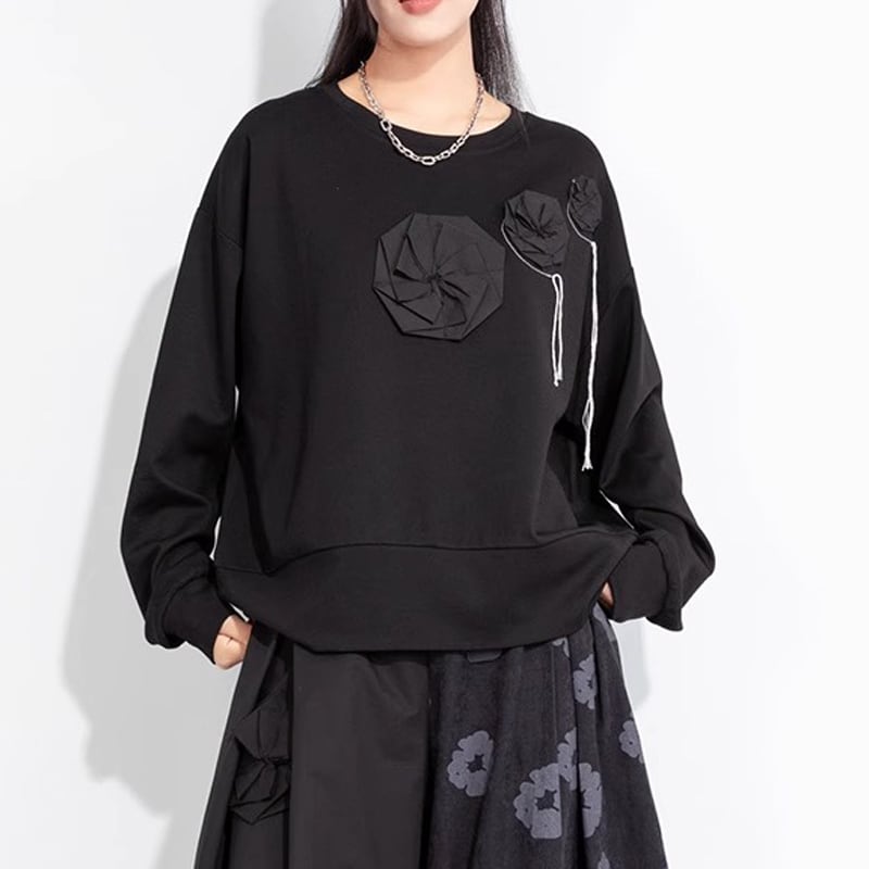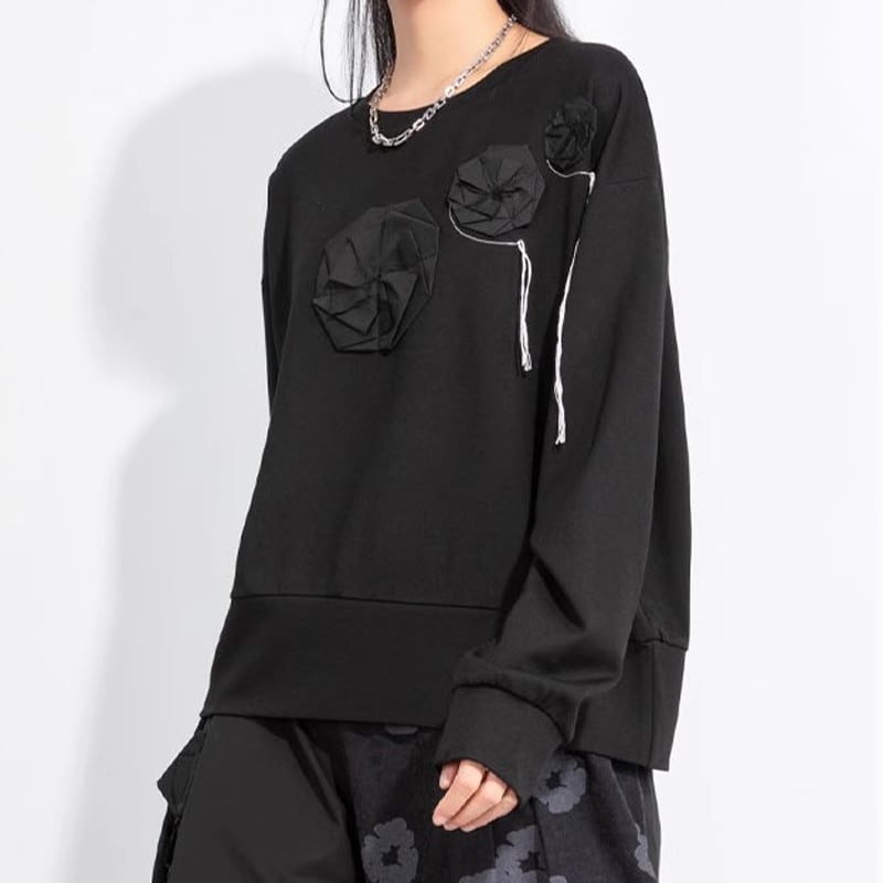 フラワーモチーフ 長袖 ヒップ丈 Tシャツ 1color T0493