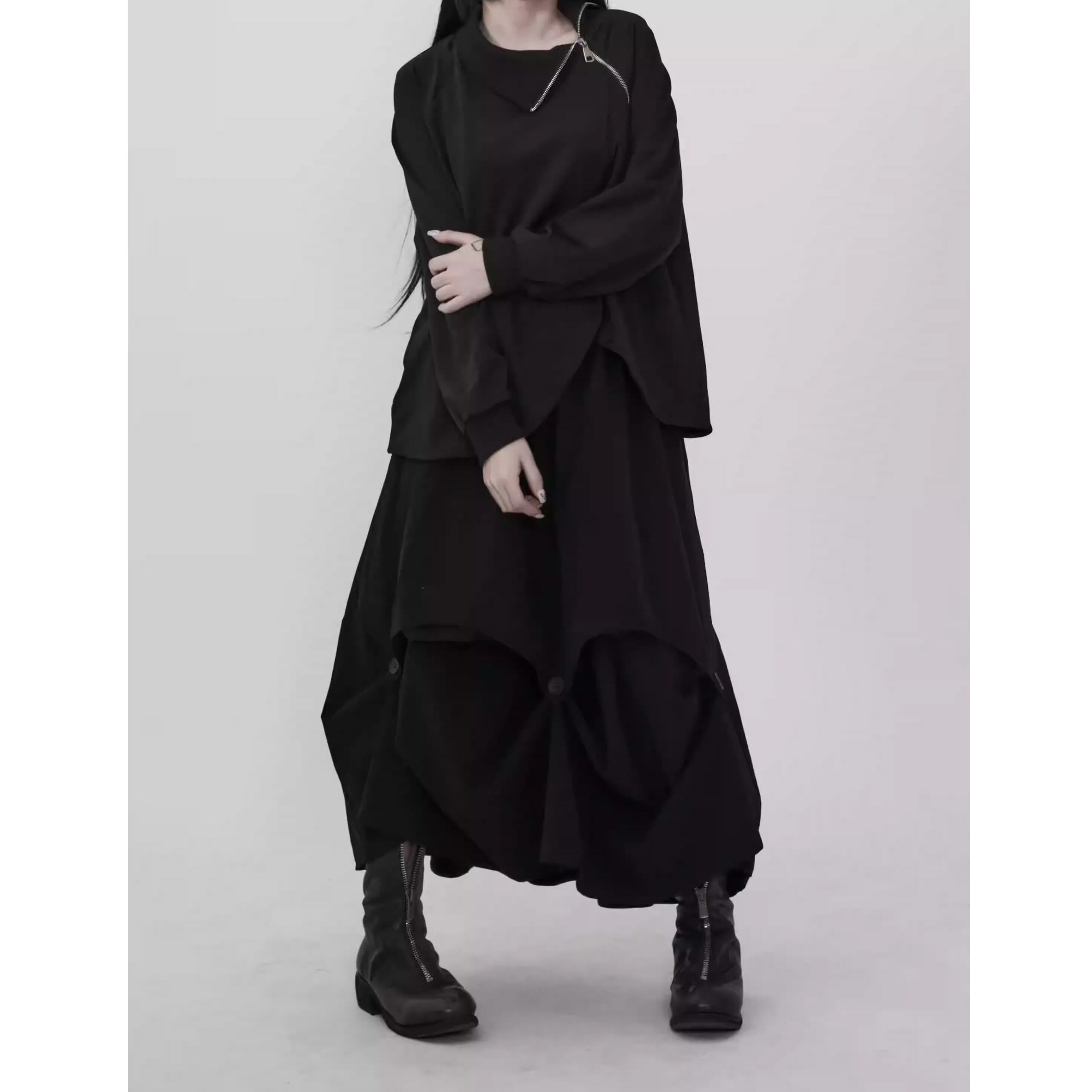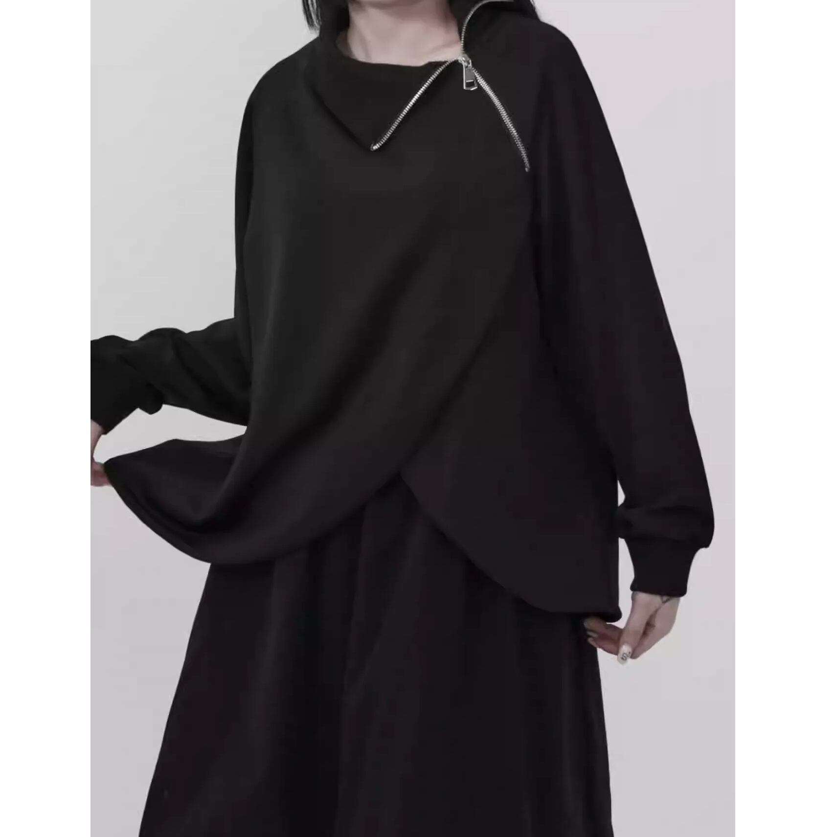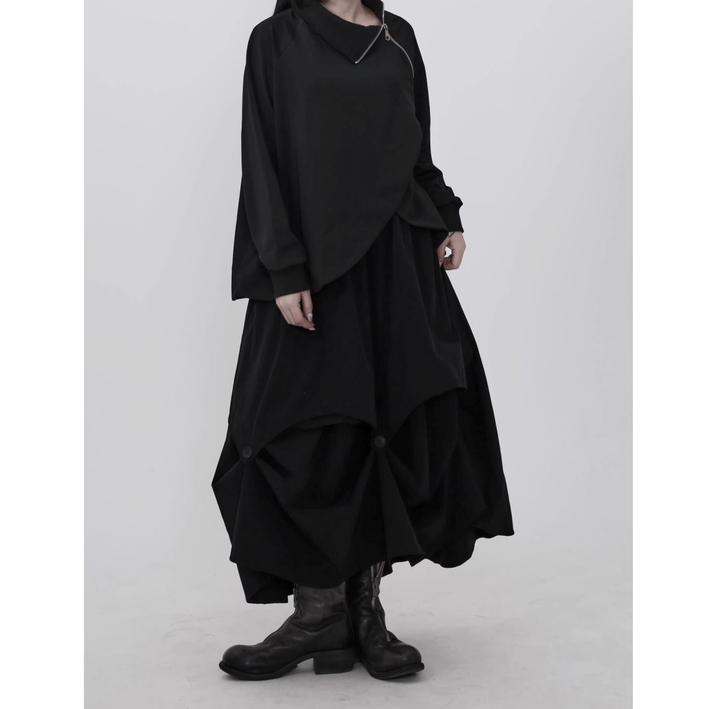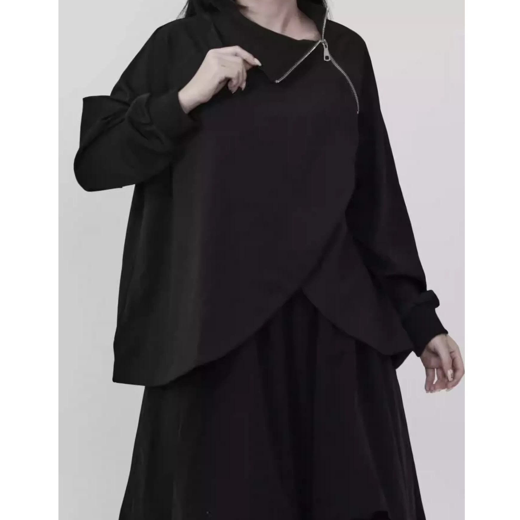 アシンメトリーネック ドロップショルダー 長袖 スウェットシャツ 1color PU0489