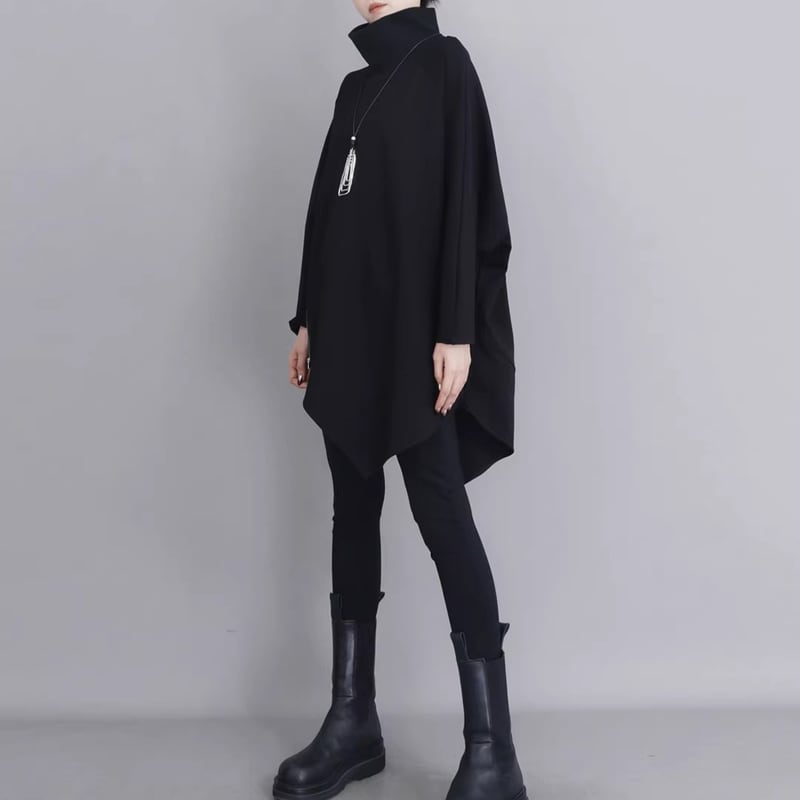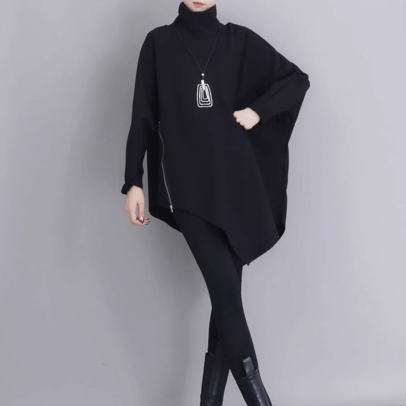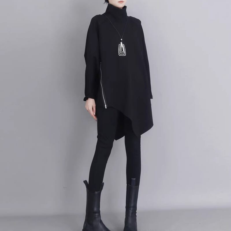 ジップデザイン ドルマンスリーブ ヒップ丈 プルオーバー 1color PU0485