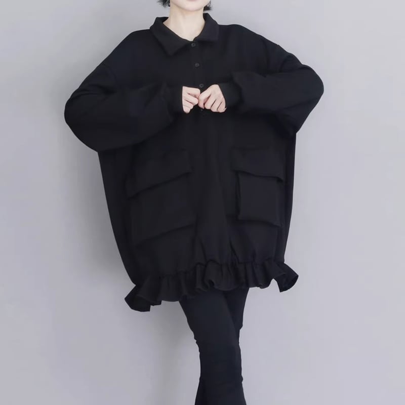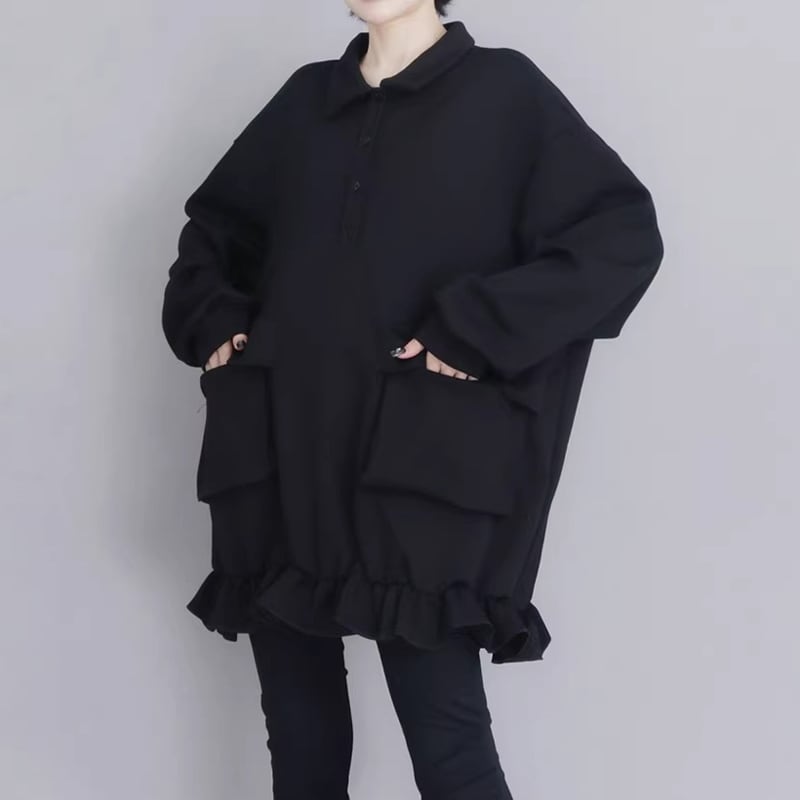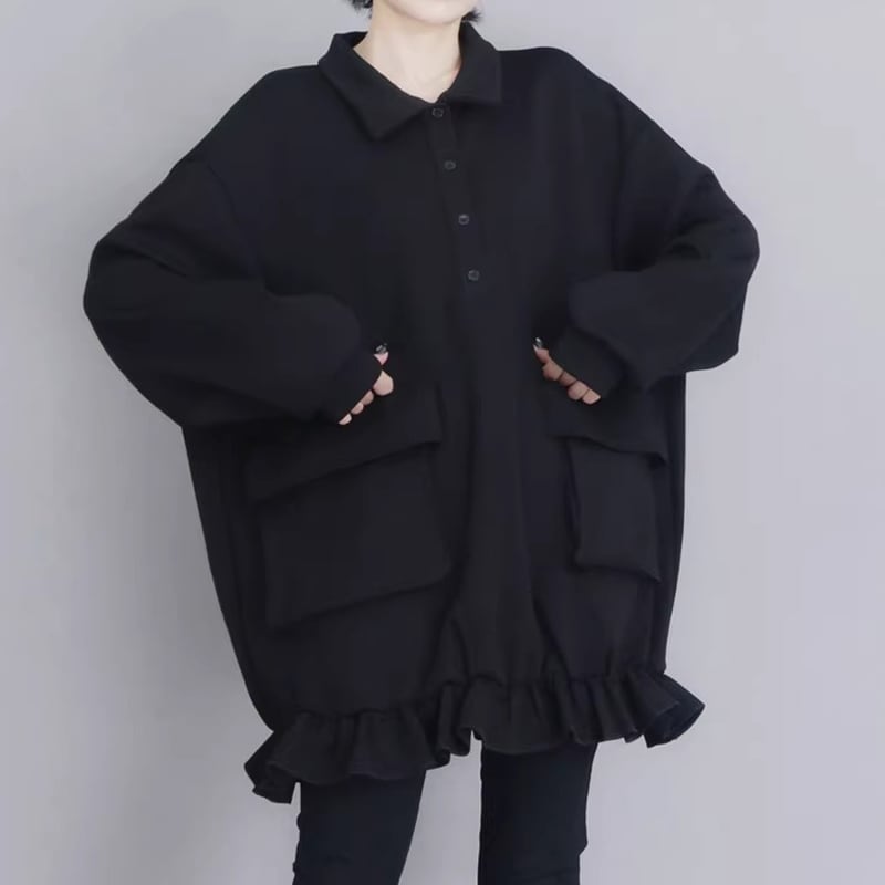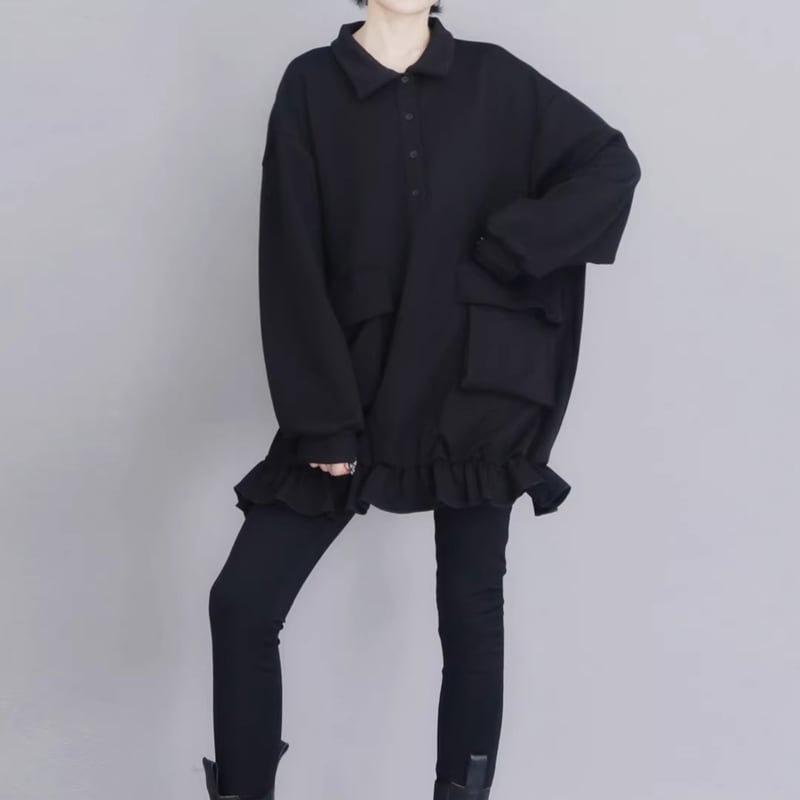 シャツカラー フリルヘム オーバーサイズ プルオーバー 1color PU0486