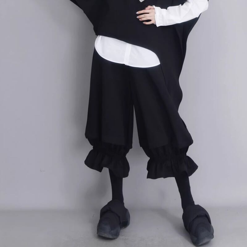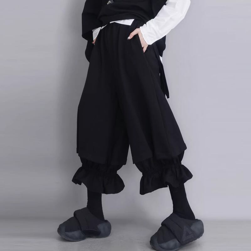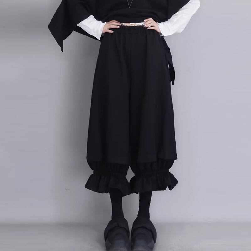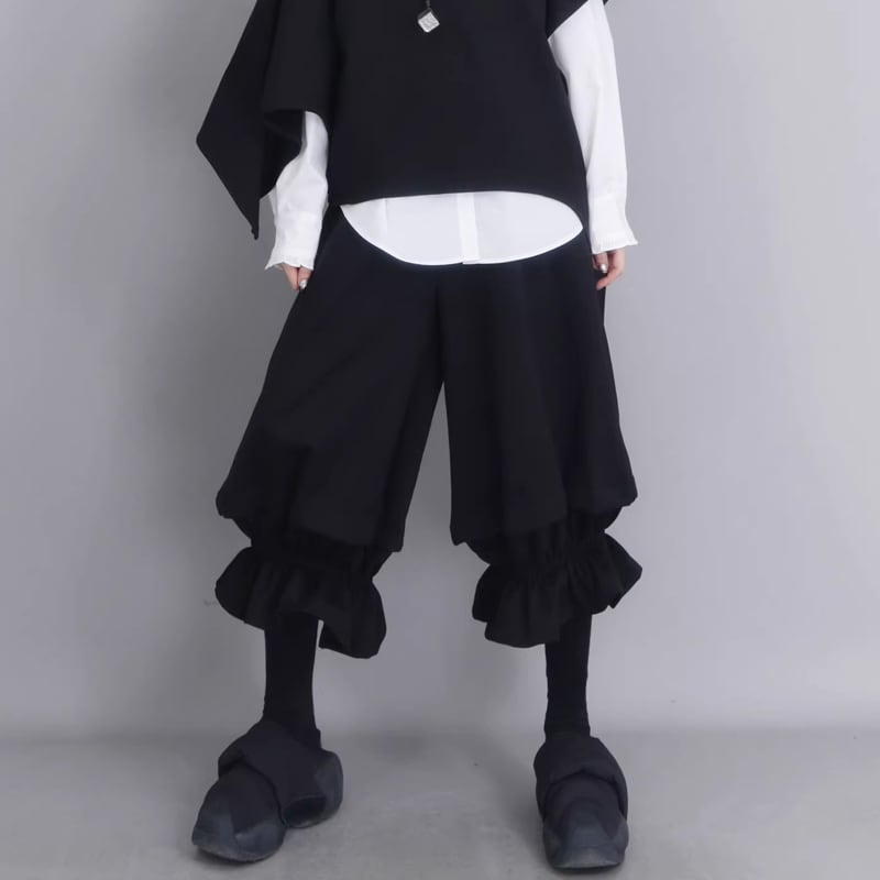 フリルデザイン ミディ丈 ワイド パンツ 1color PT0450