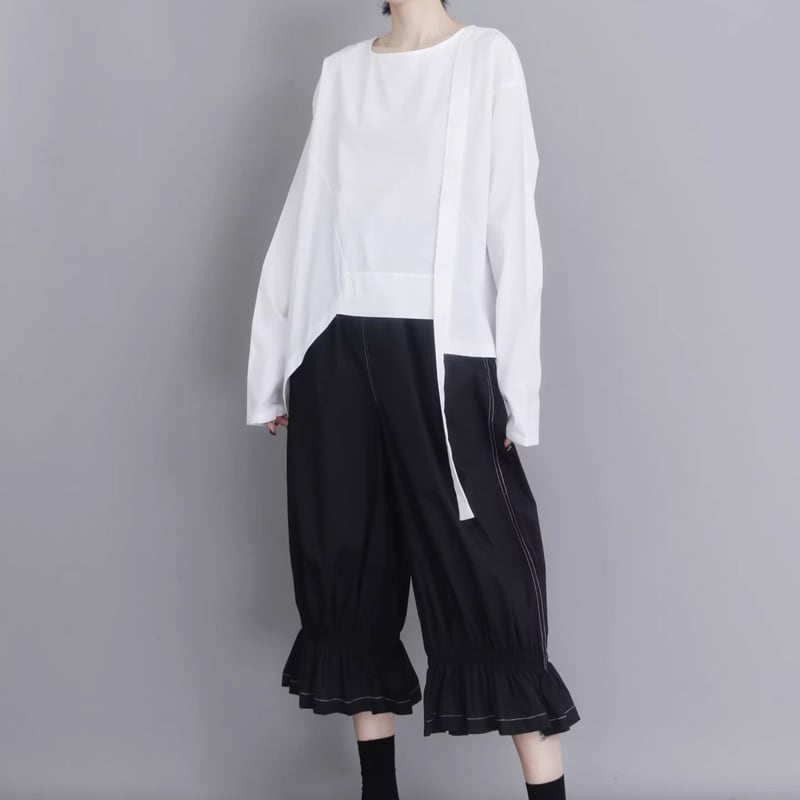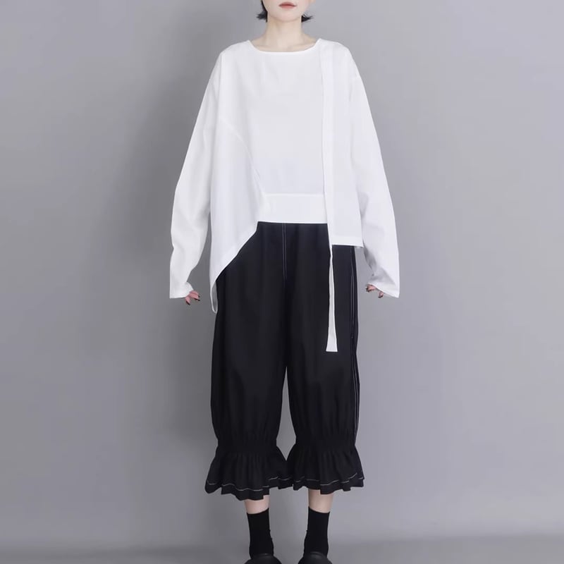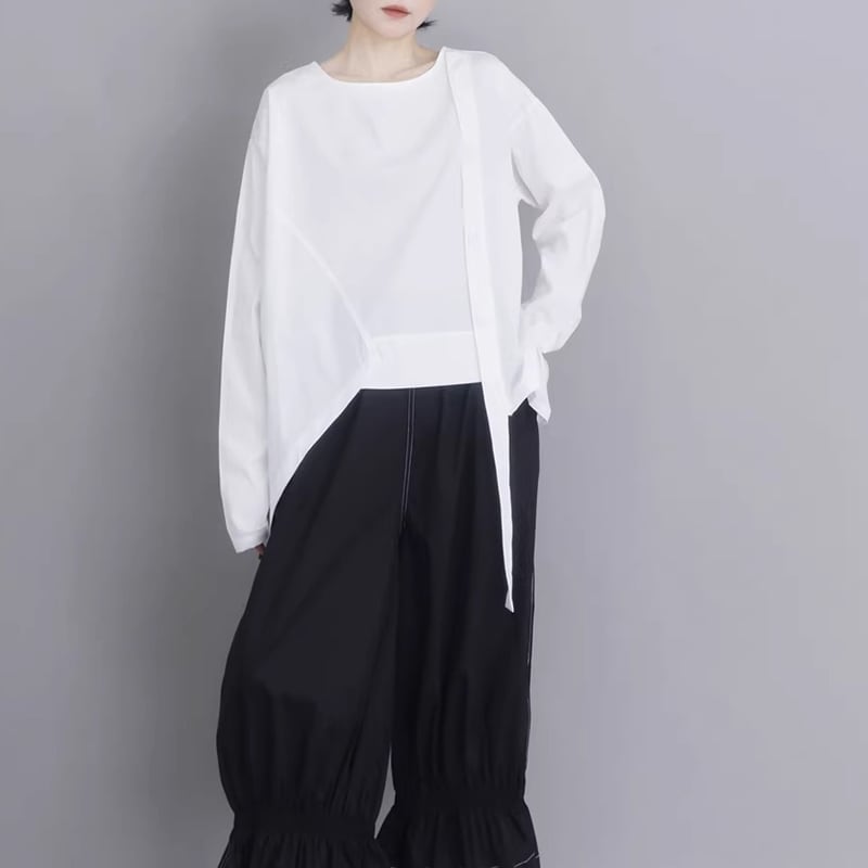 アシンメトリー 長袖 ヒップ丈 シャツ 1color T0499
