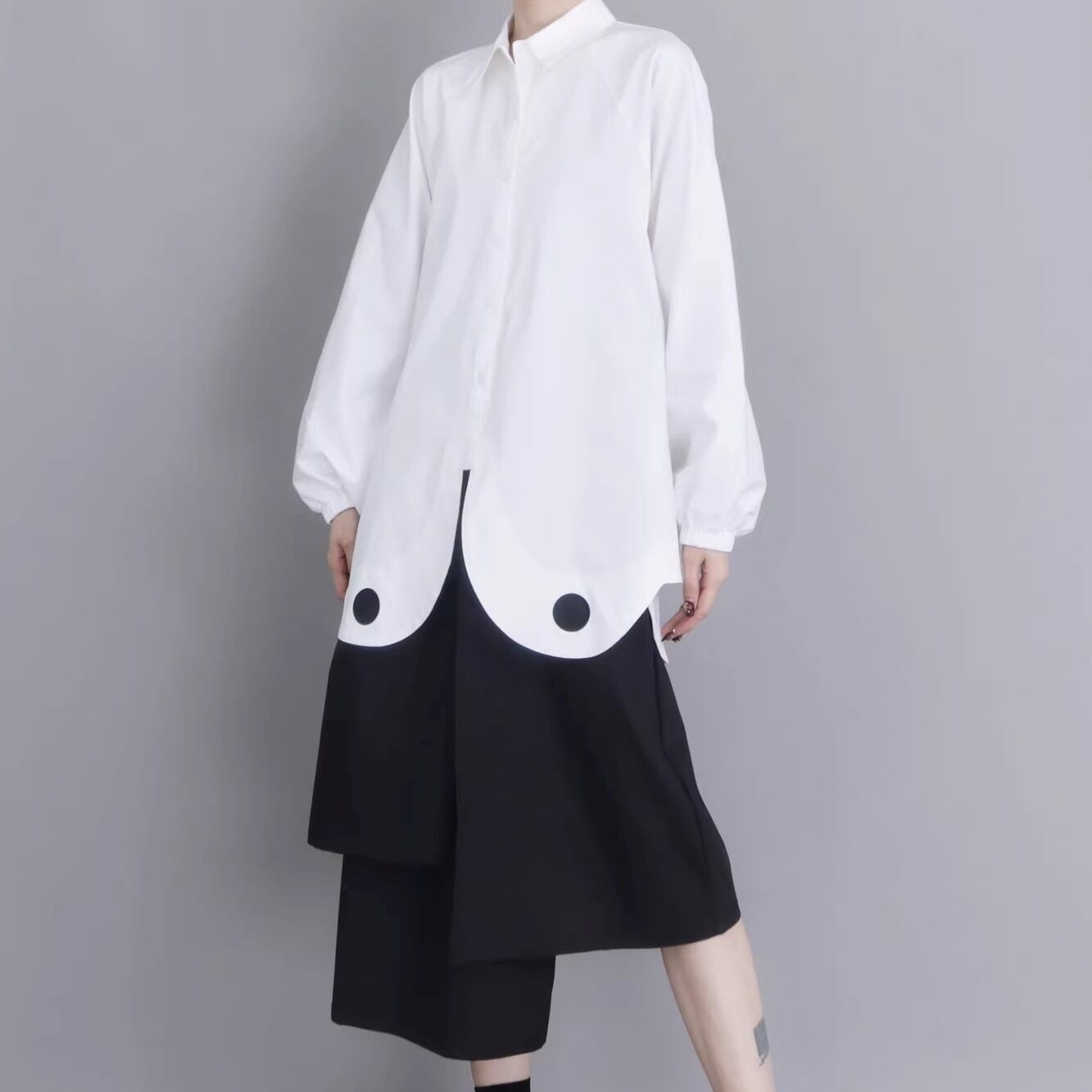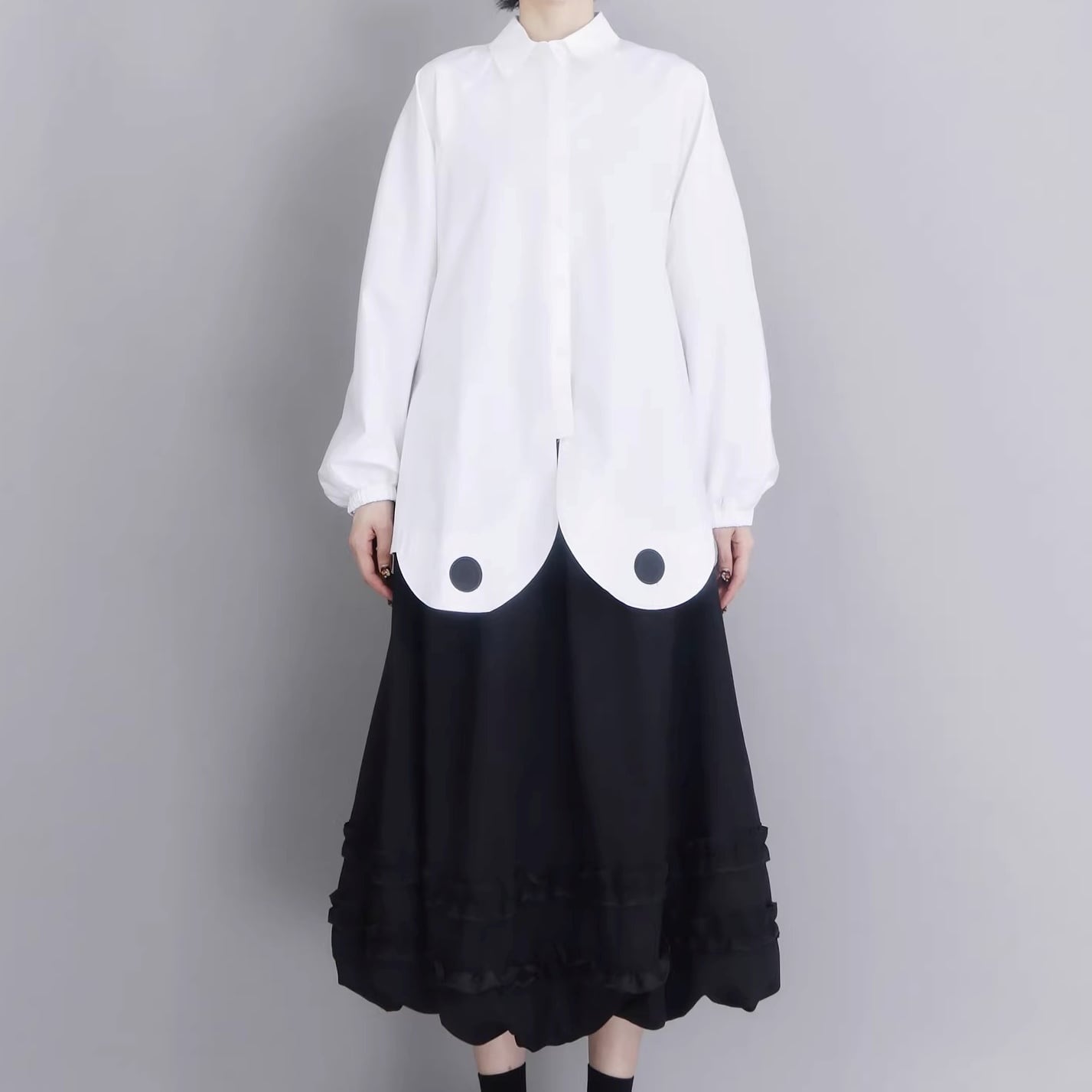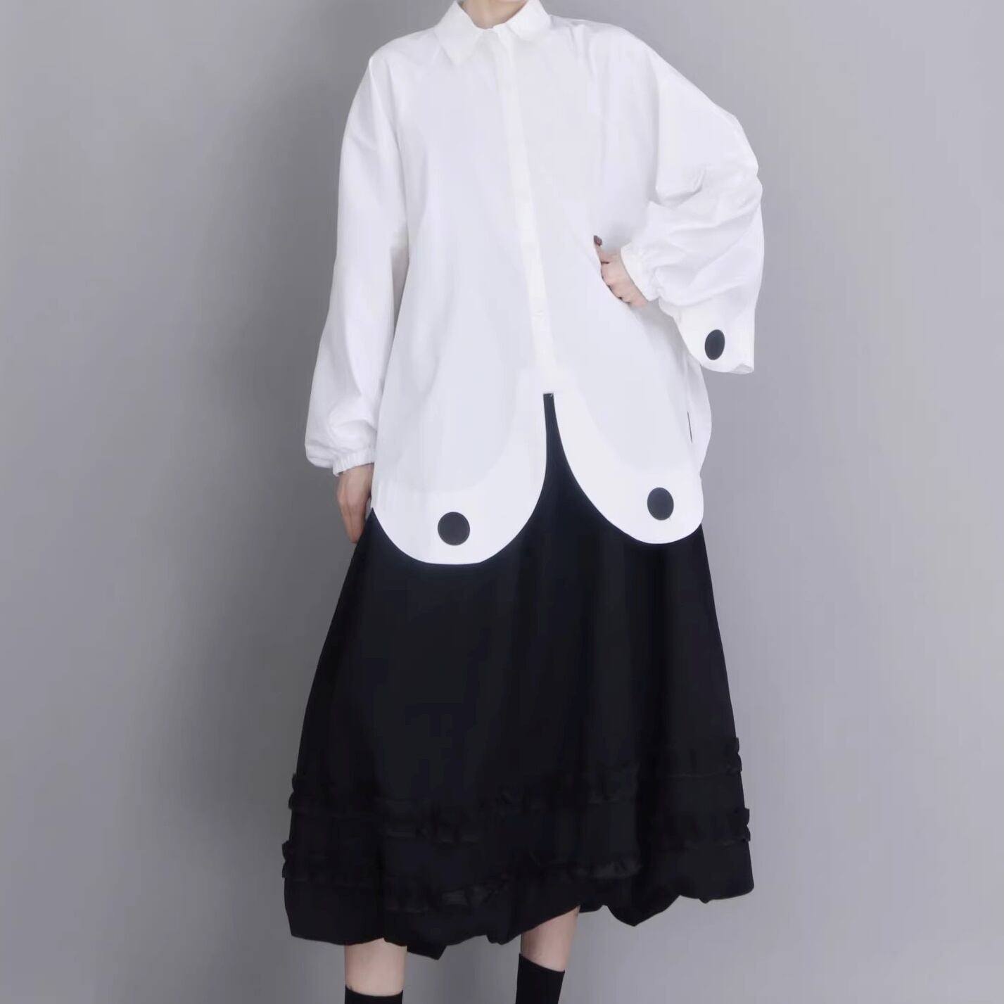 ドット装飾 バルーン袖 オーバーサイズ シャツ 1color BL0583
