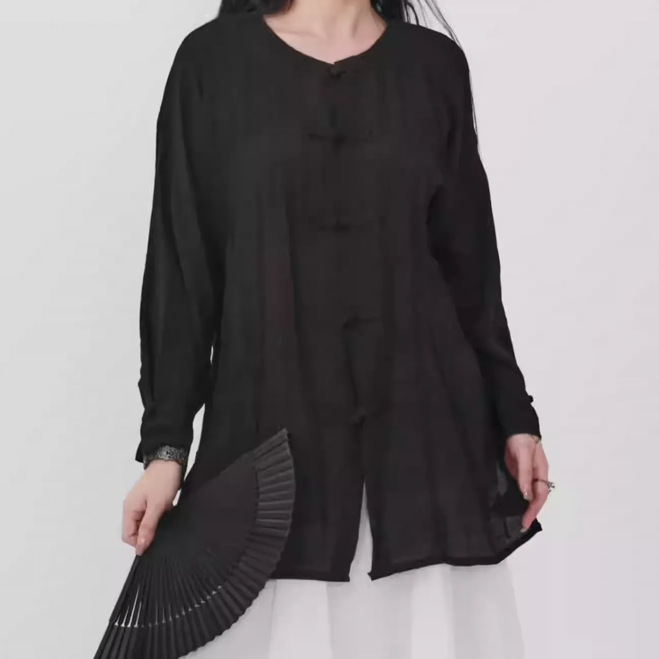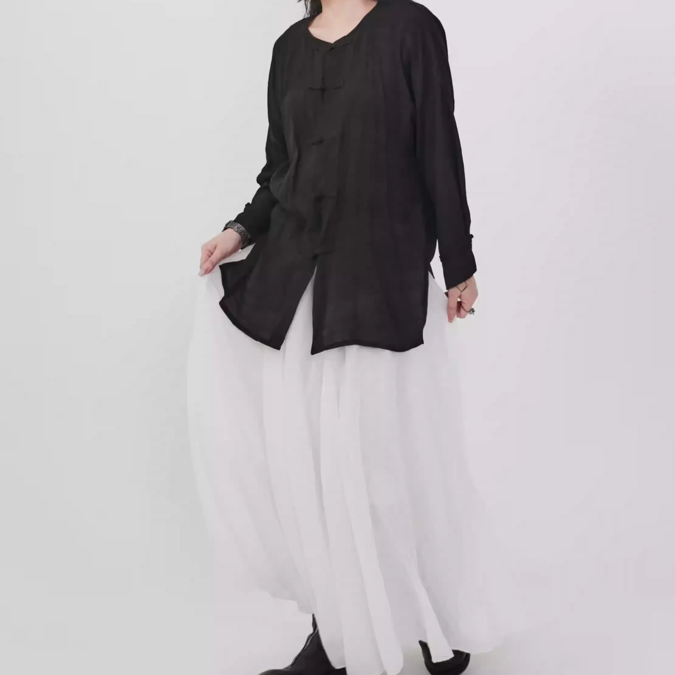 チャイナボタン 長袖 ミドル丈 シャツ 1color BL0585
