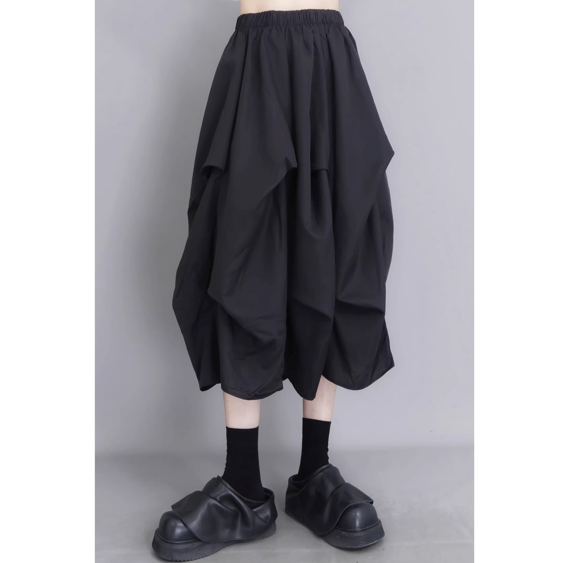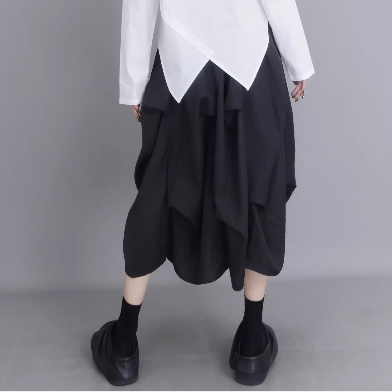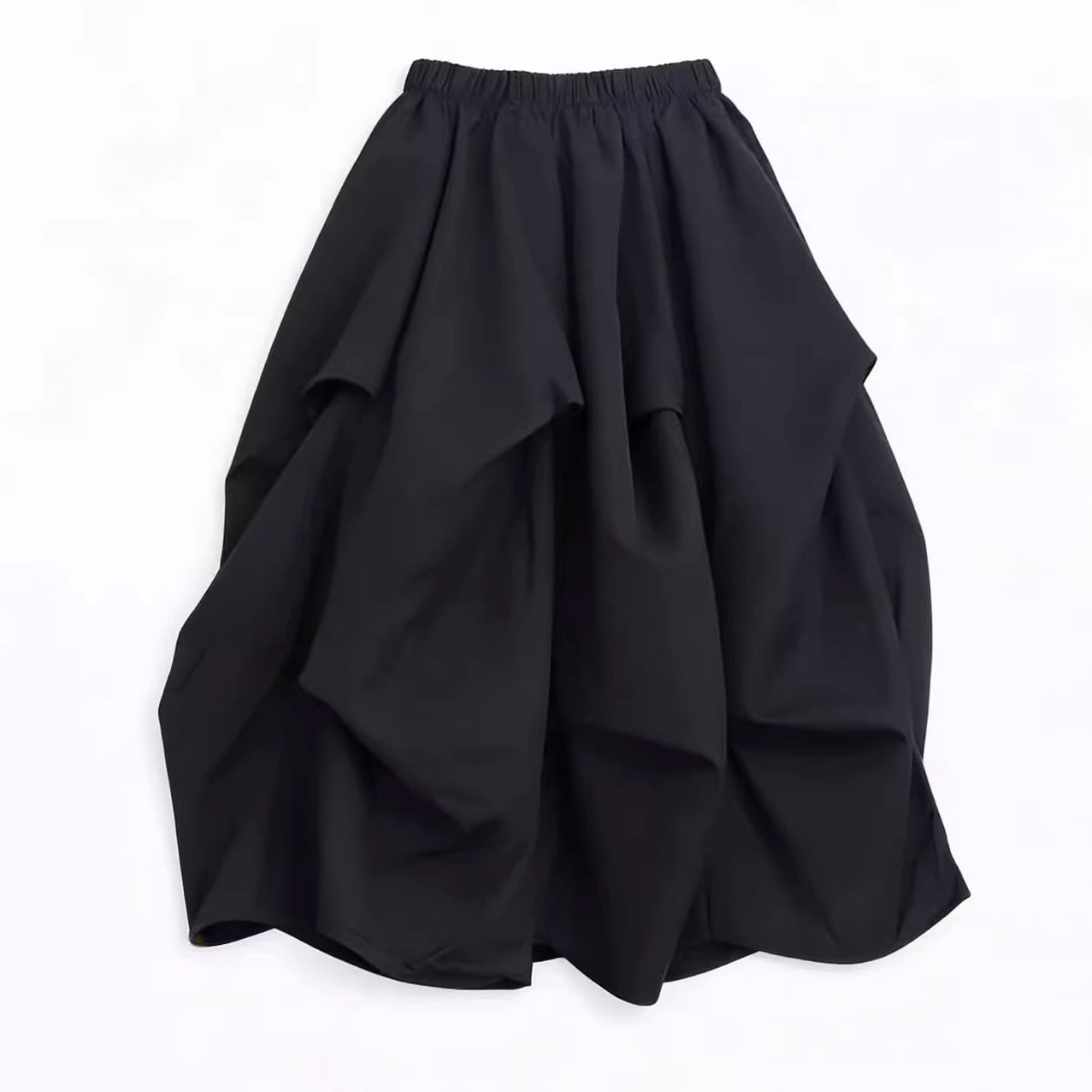 アシンメトリー ミディ丈 ギャザー フレアスカート 1color SK0341