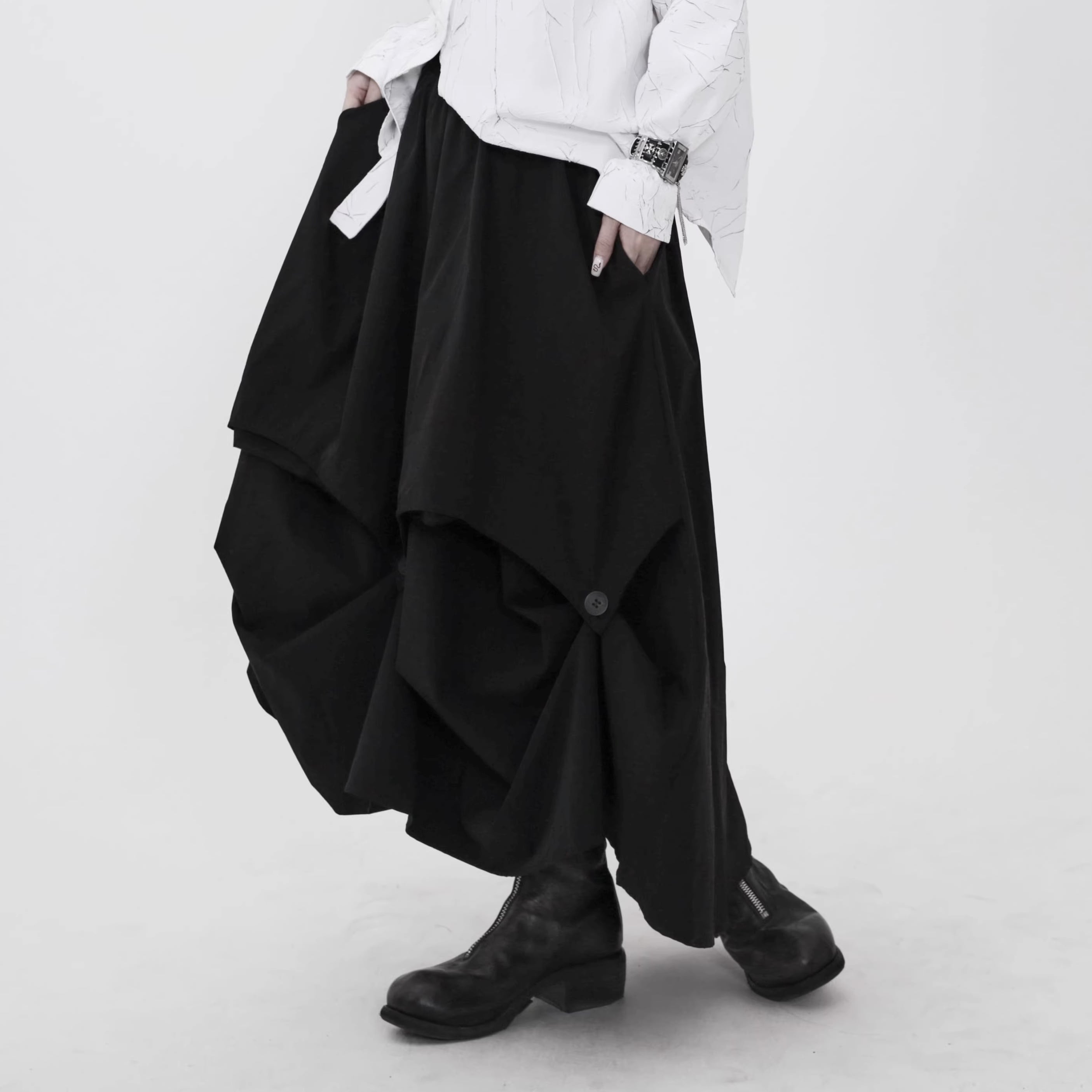 アシンメトリー ミモレ丈 フレアスカート 1color SK0344