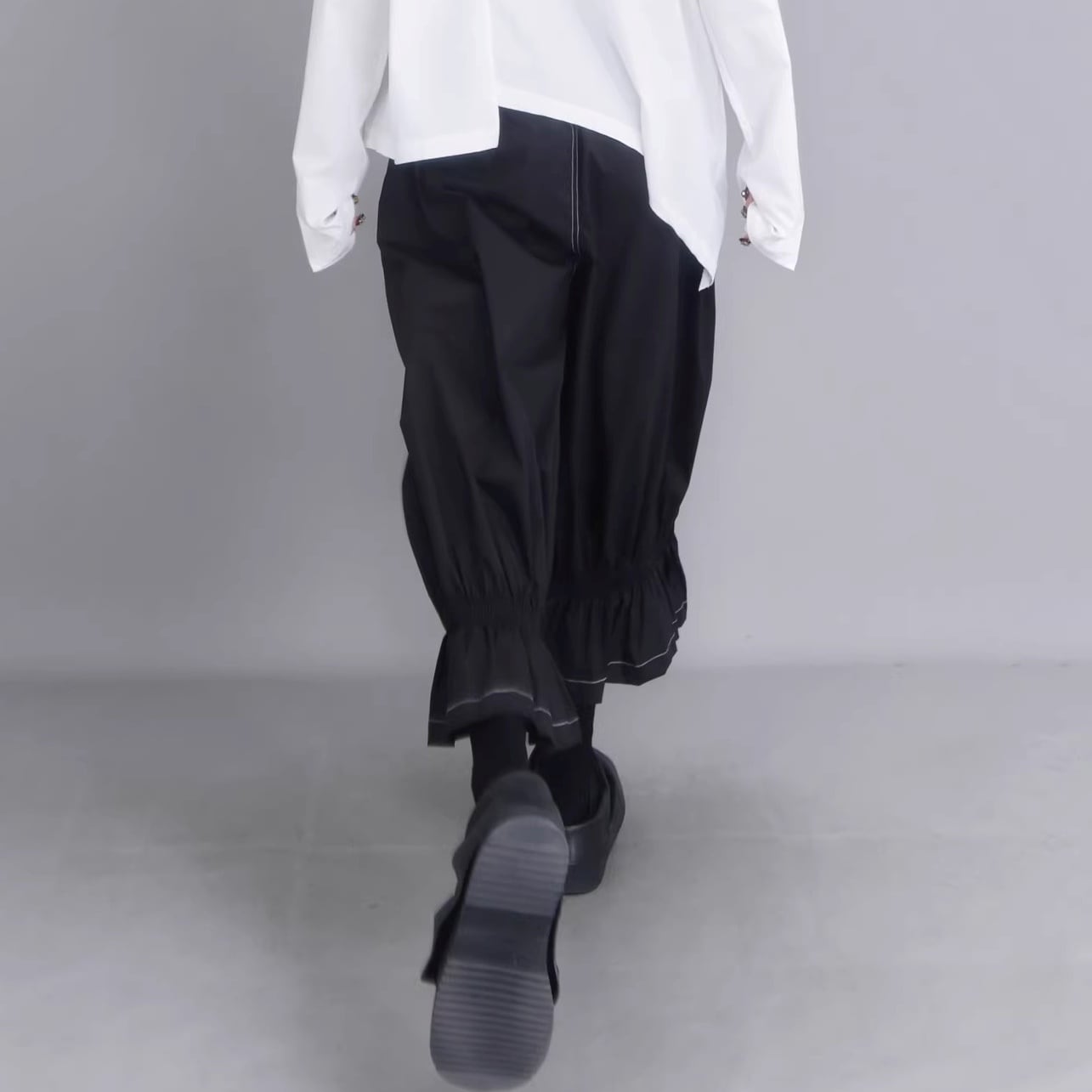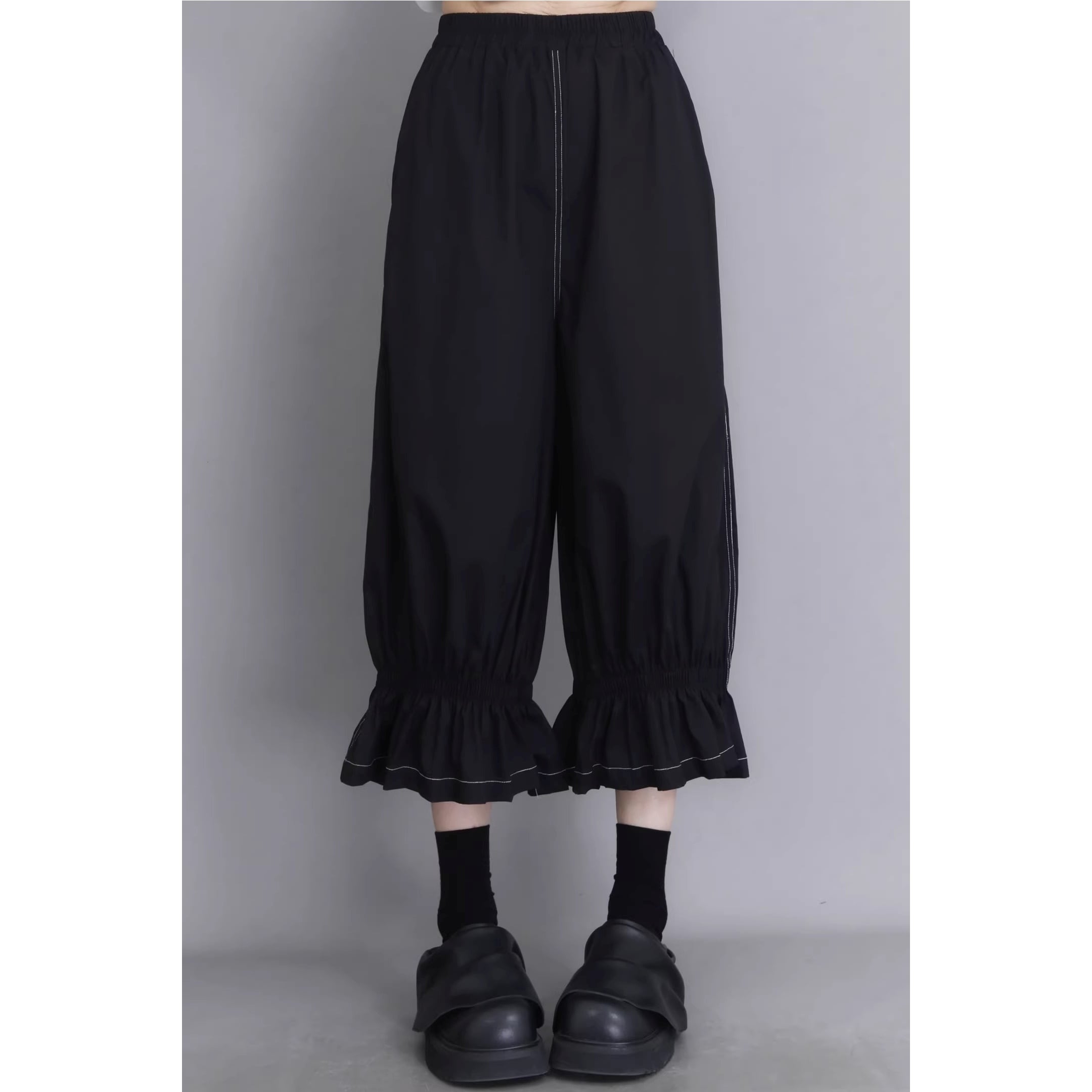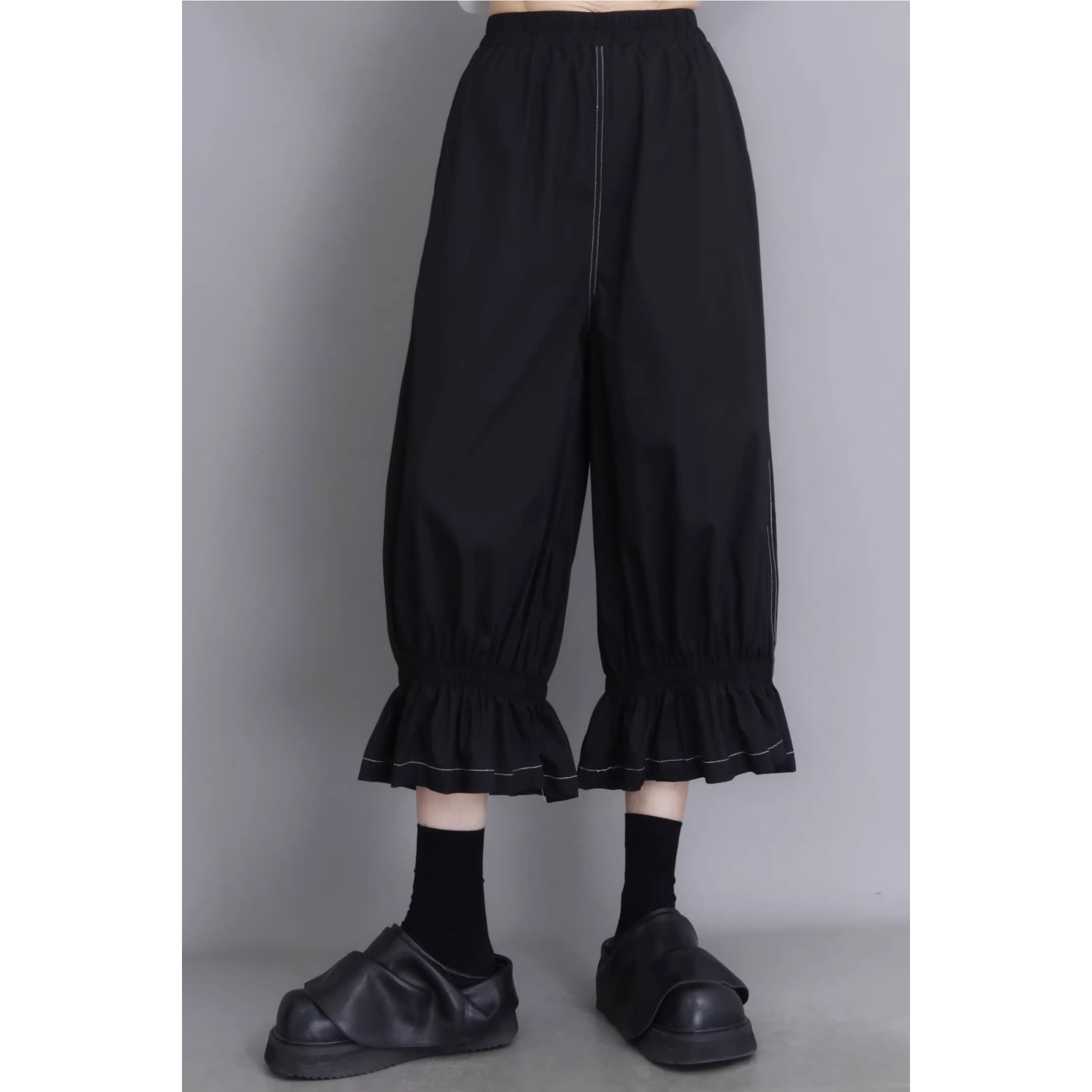 ステッチ入り 裾フリル クロップド ワイドパンツ 1color PT0453