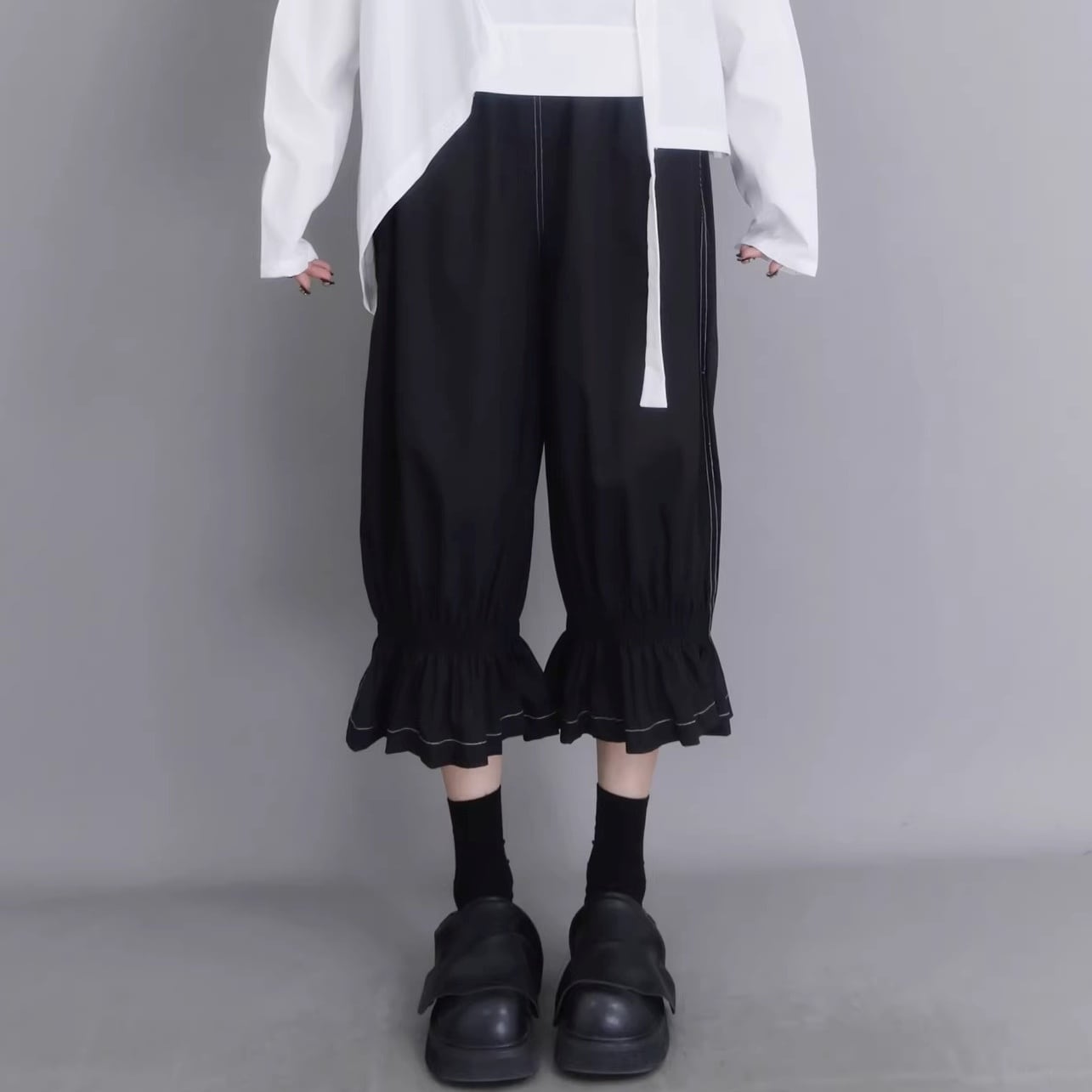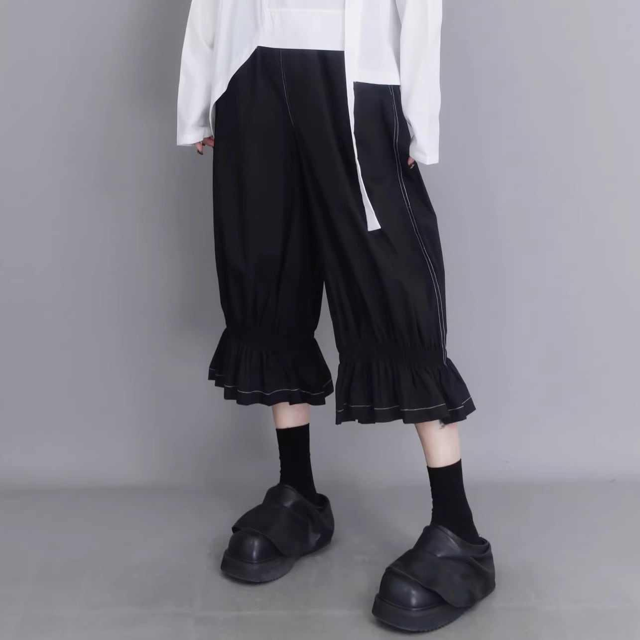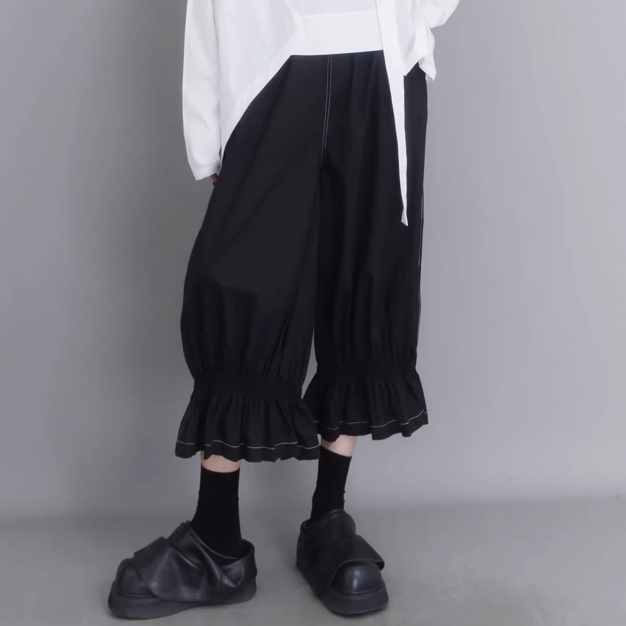 ステッチ入り 裾フリル クロップド ワイドパンツ 1color PT0453