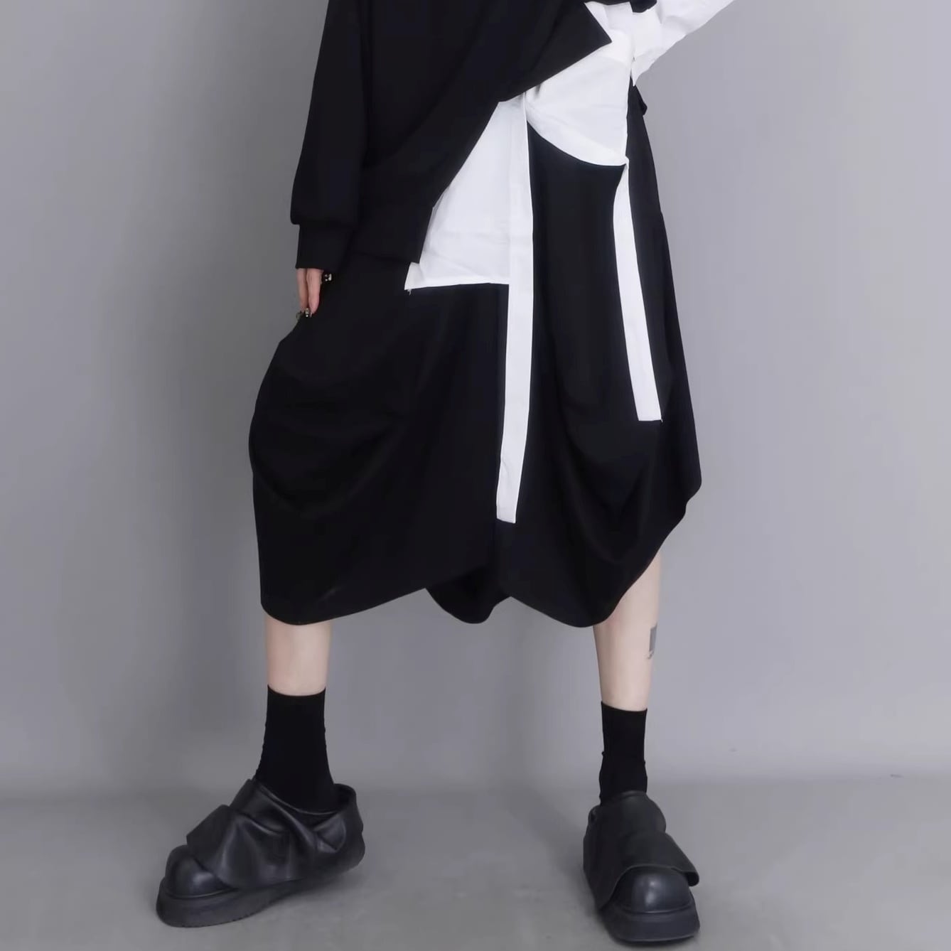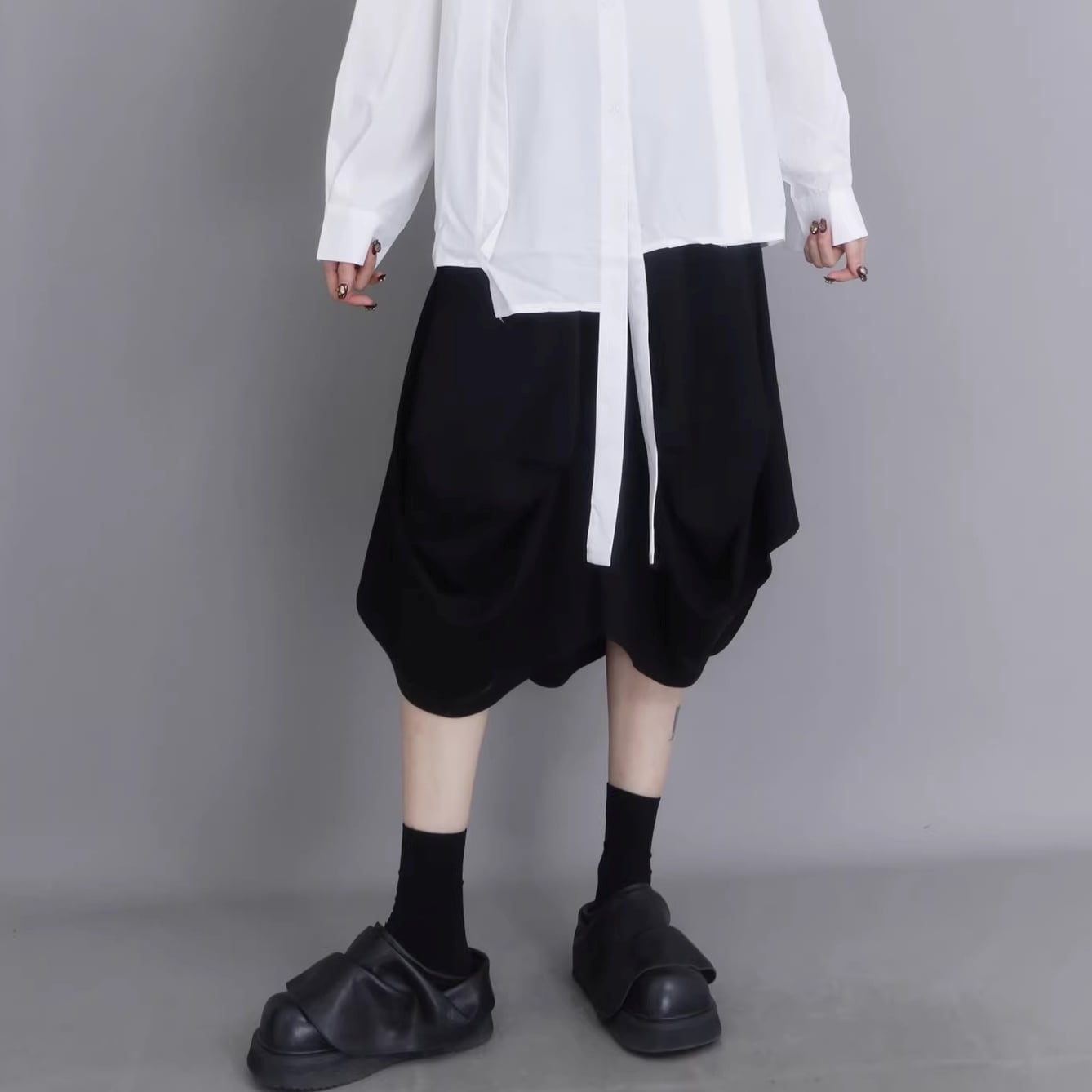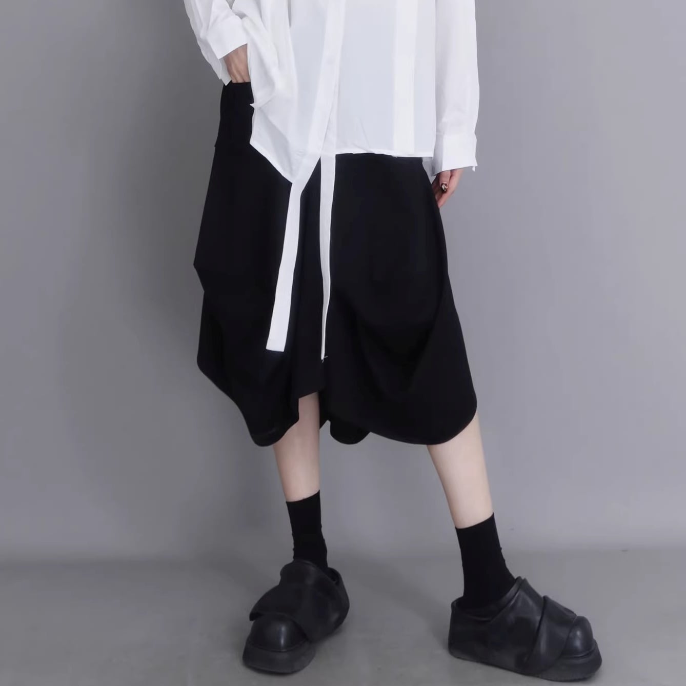 ドレープ アシンメトリー ミディ丈 ワイドパンツ 1color PT0454