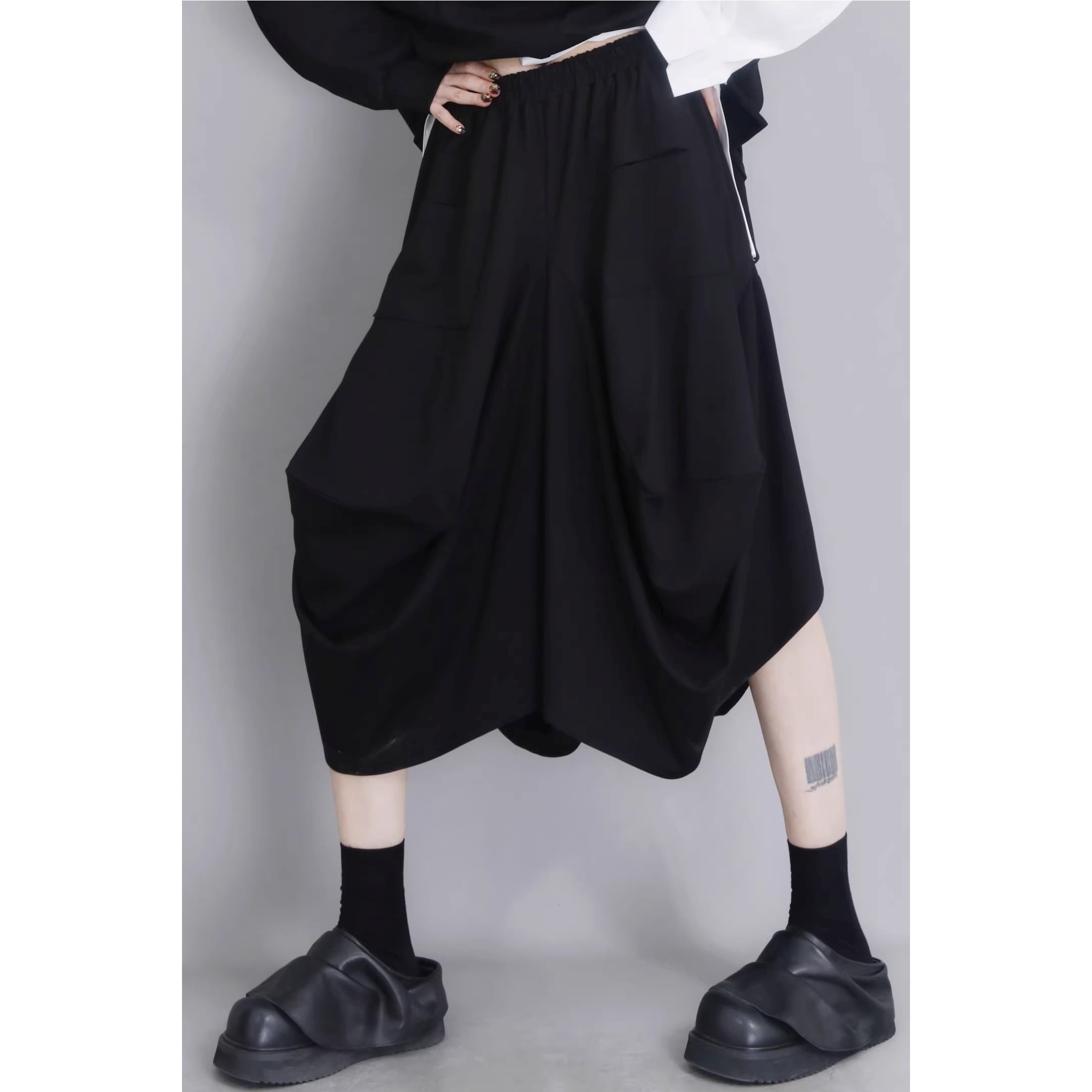 ドレープが作り出す、独特のシルエットが、コーディネートに動きと個性をプラスします。