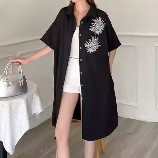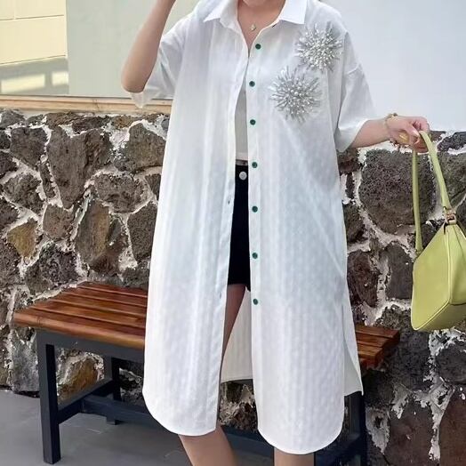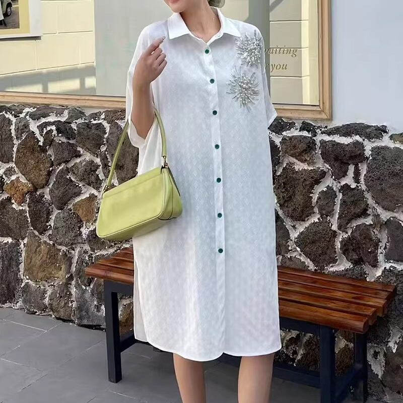 半袖 ミモレ丈 シャツカラー シャツワンピース 2color BL0590
