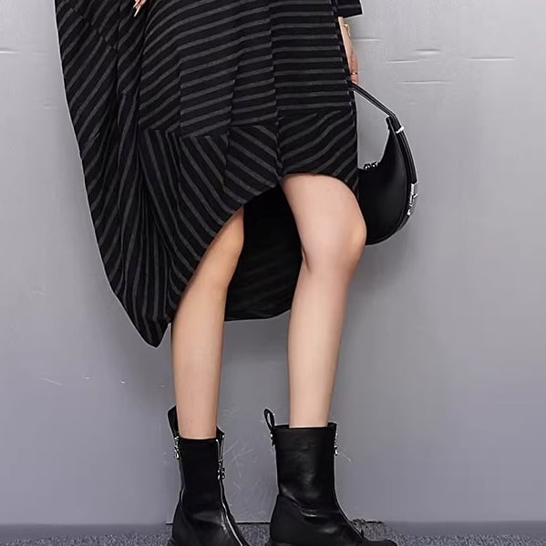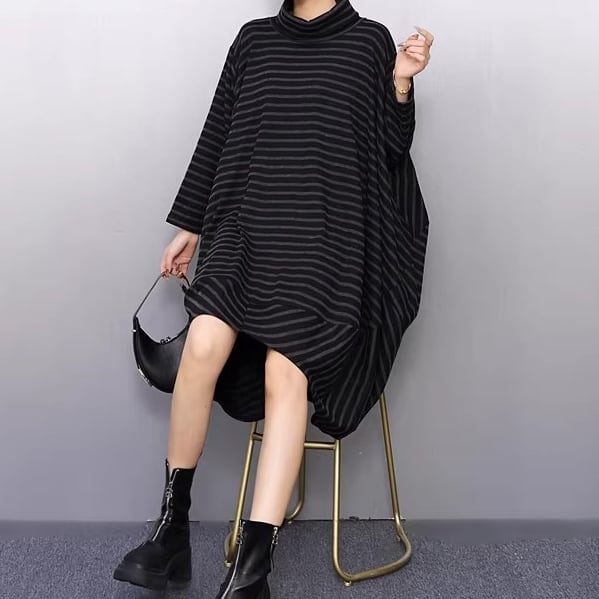 ストライプ柄 バルーンシルエット ミニ丈 ワンピース 1color ON1014