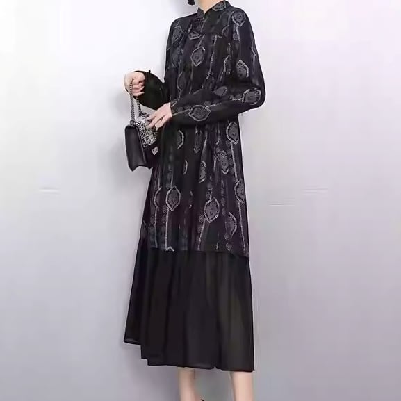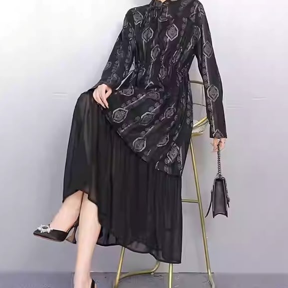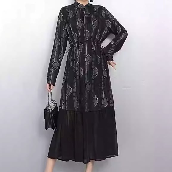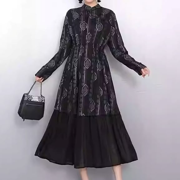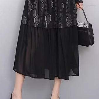 上品な柄と切り替えデザインが、落ち着いた大人の女性らしさを演出します。