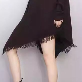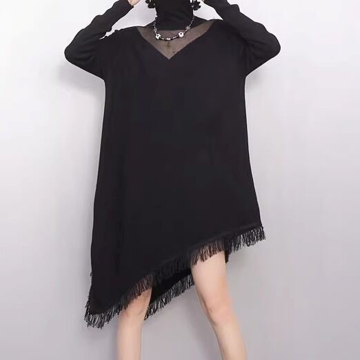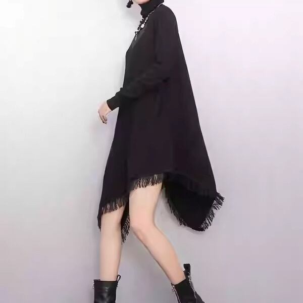 フリンジ アシンメトリー 長袖 ミニ丈 ニットワンピース 2color ON1018