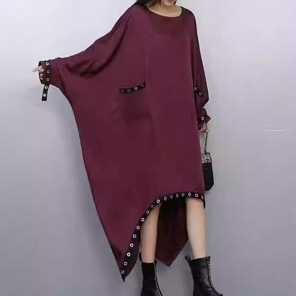 パッチポケット付き オーバーサイズ アシンメトリー ワンピース 2color ON1021