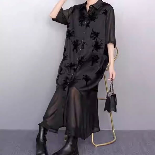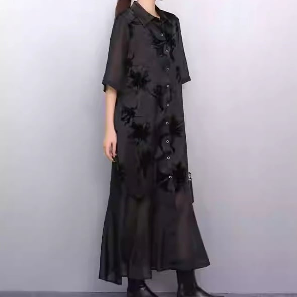 ボタンフロント マキシ丈 半袖 シャツワンピース 1color ON1023