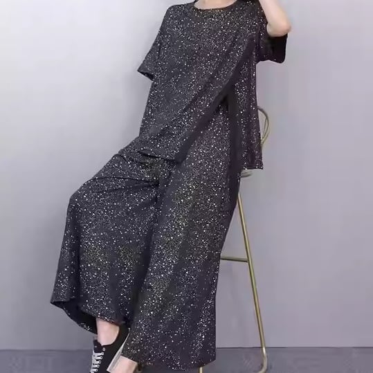 ハーフスリーブ ワイド クロップド丈 Tシャツ&パンツ 1color ST0217