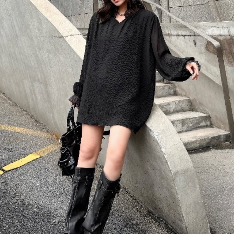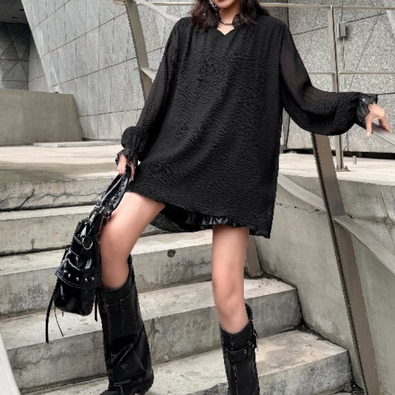 長袖 オーバーサイズ ミニ丈 ワンピース 1color ON1030