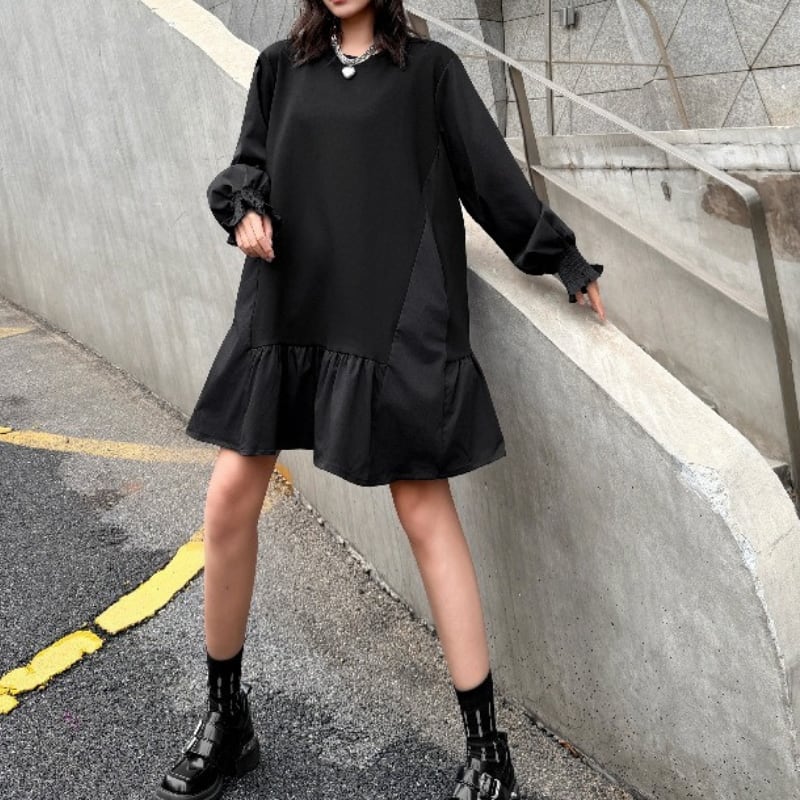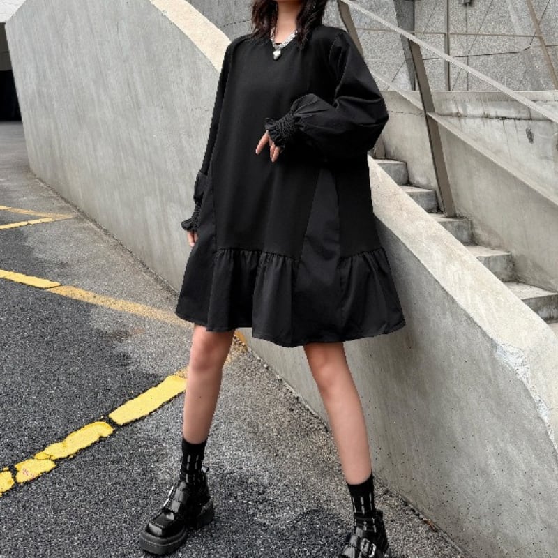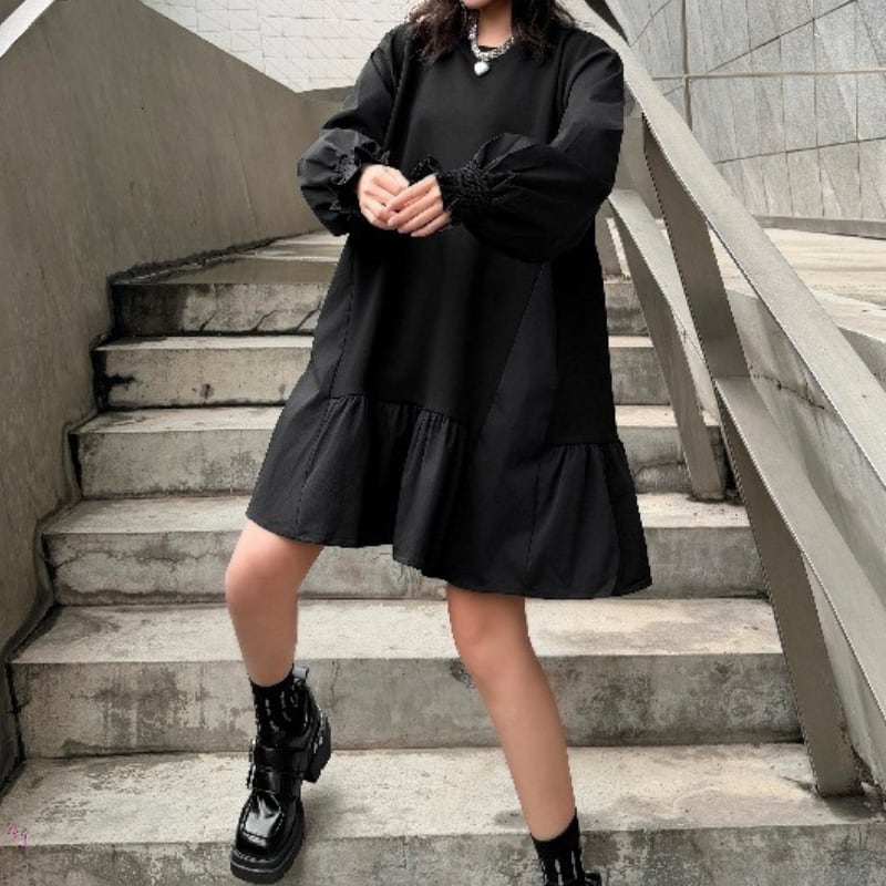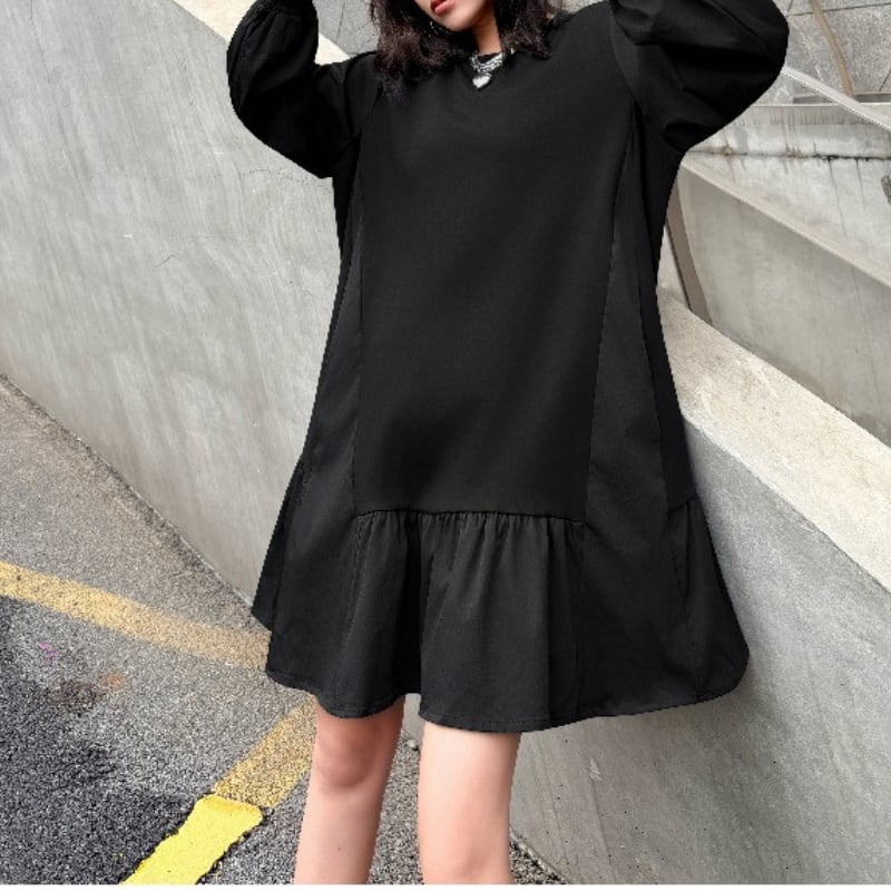 ティアード 腰丈 オーバーサイズ ワンピース 1color ON1029