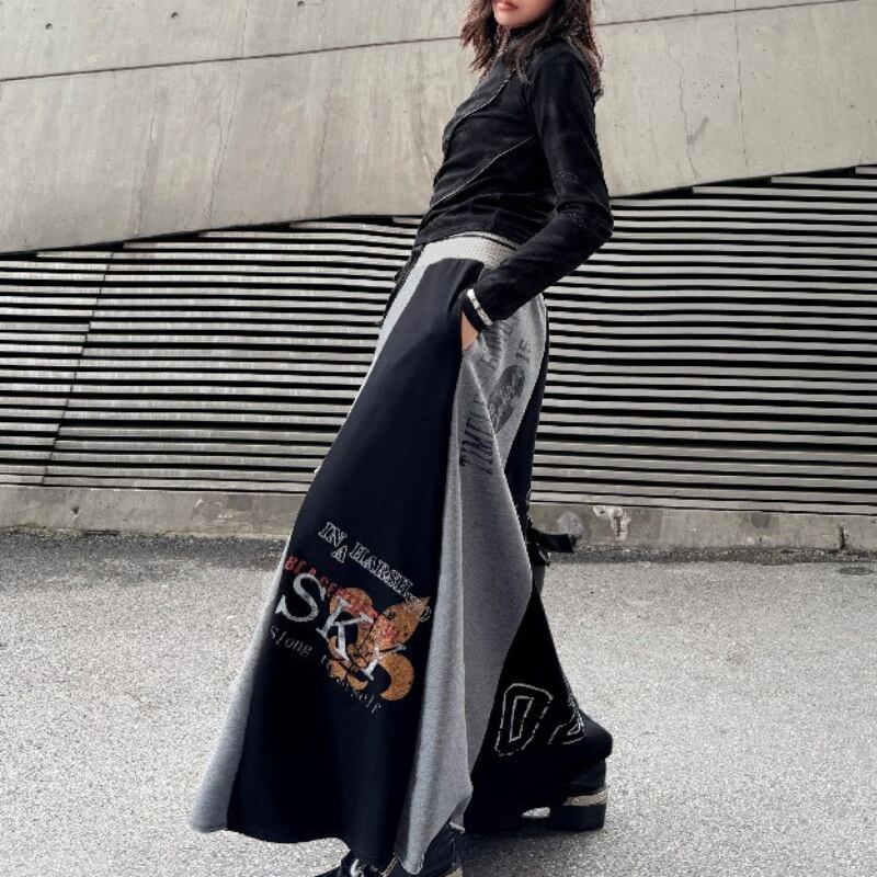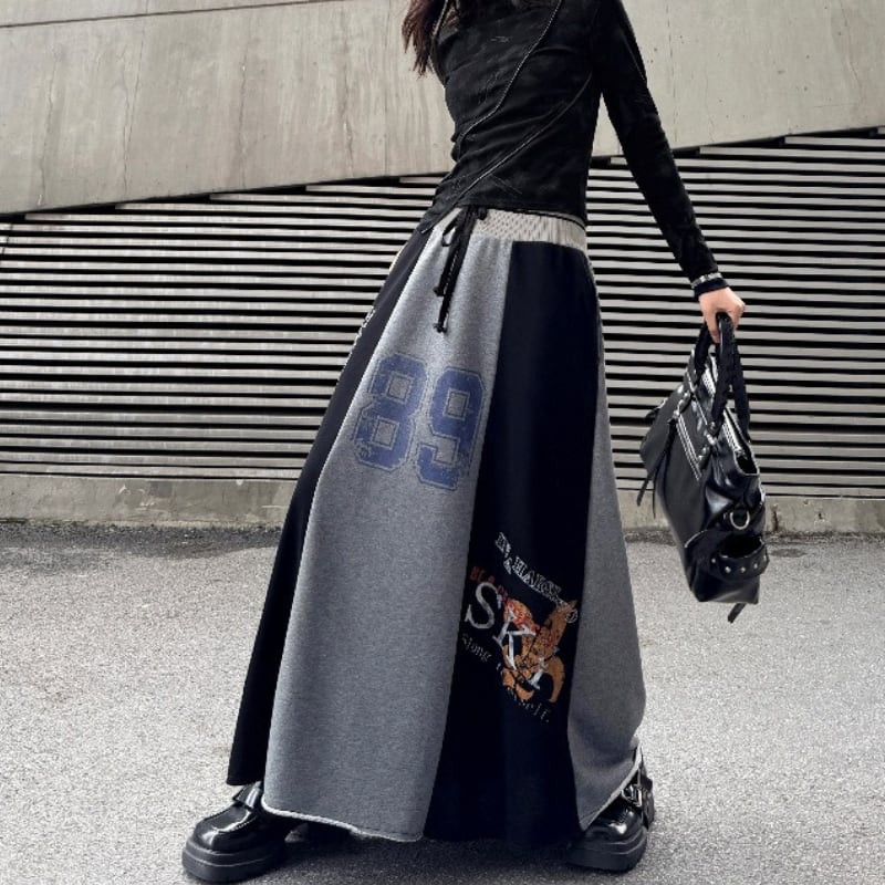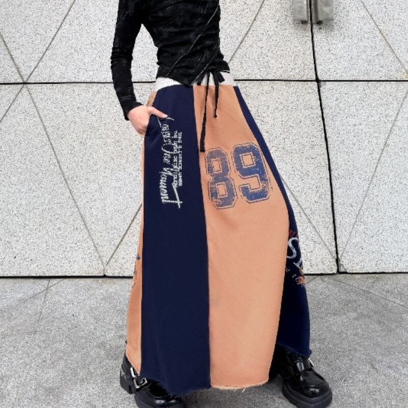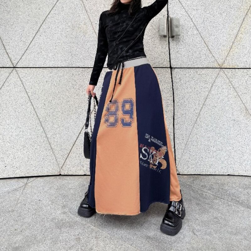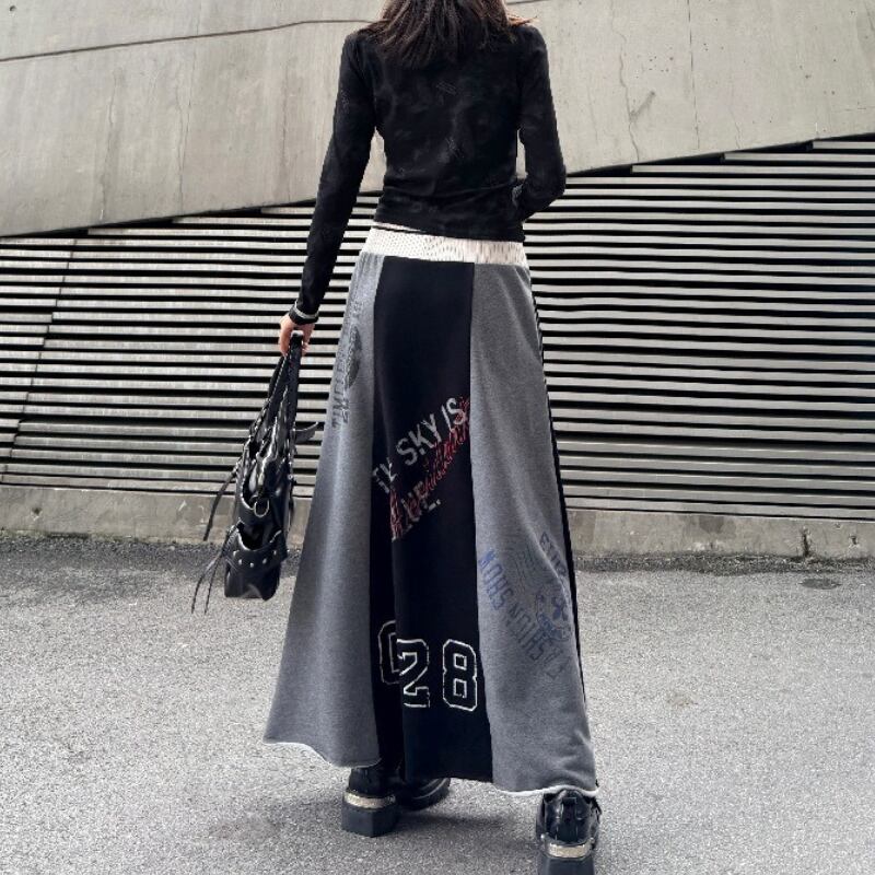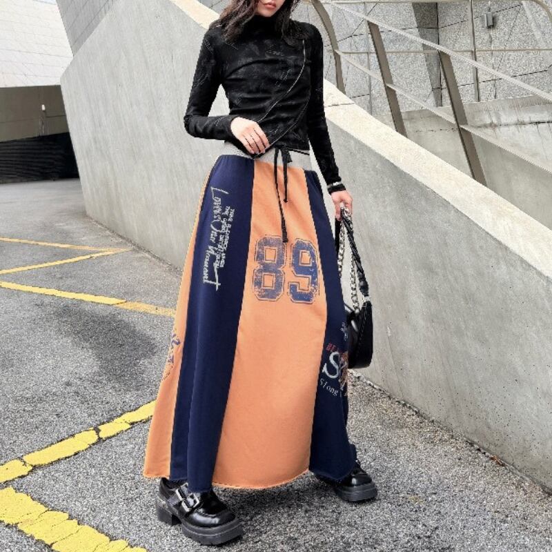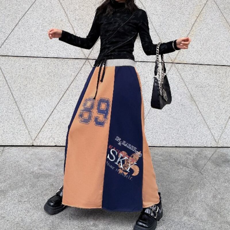 切替デザイン マキシ丈 Aラインスカート 2color SK0347