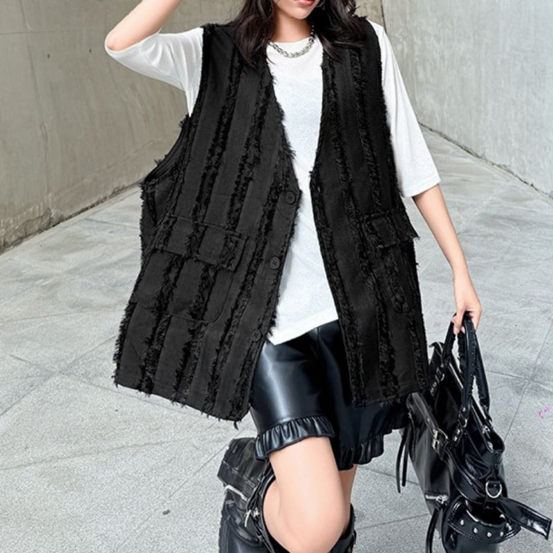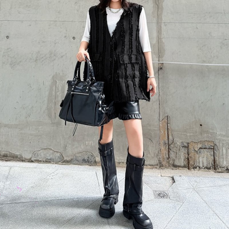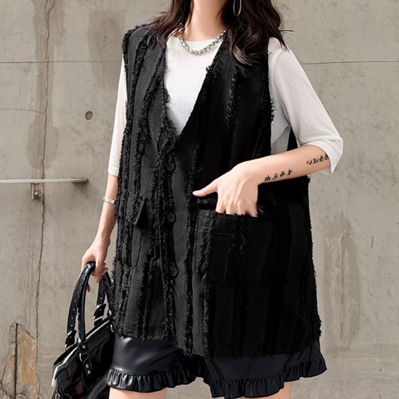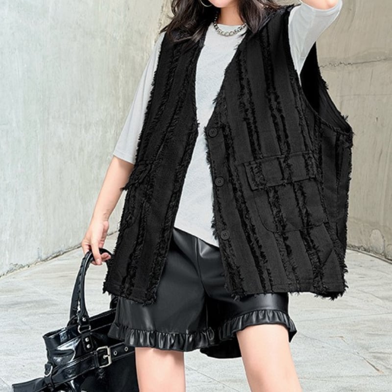 ボタンフロント パッチポケット ショート丈 ベスト 1color PU0495