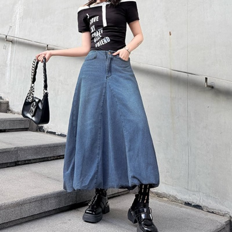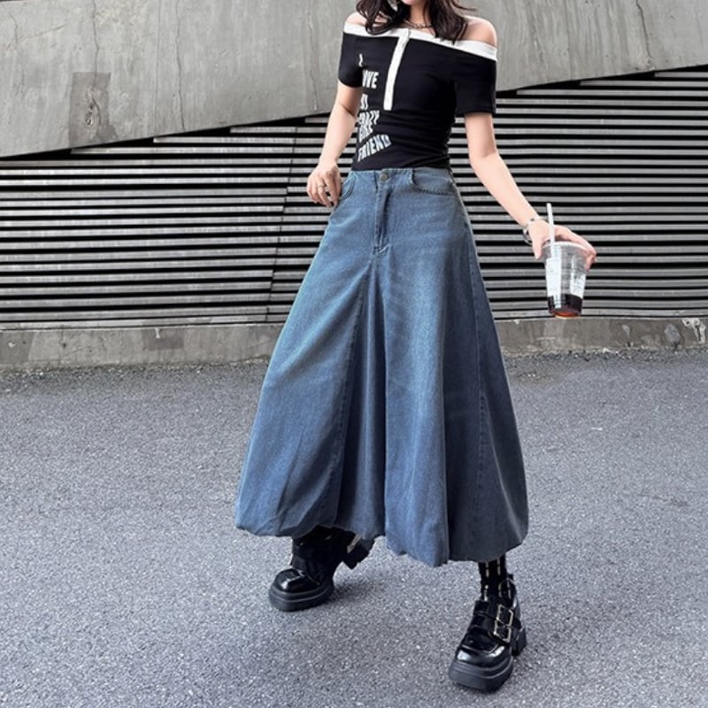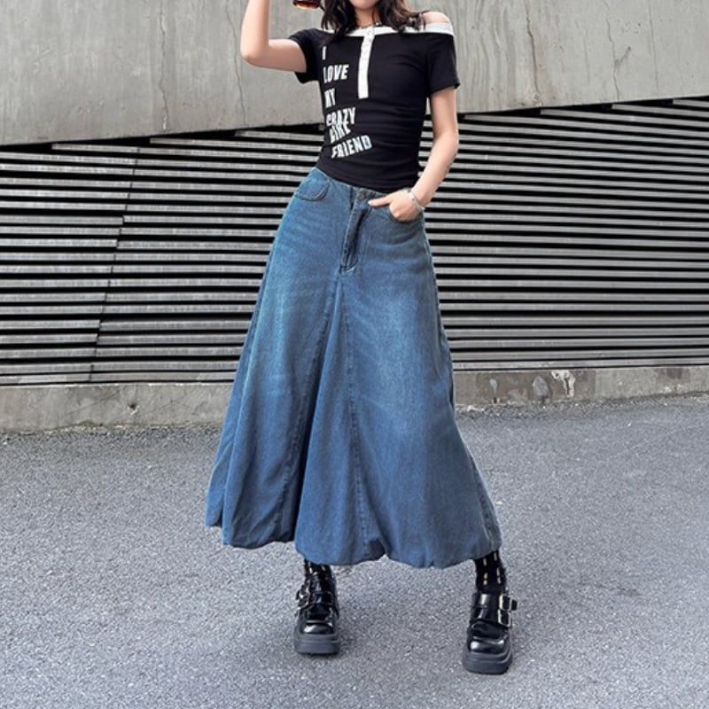 フレア マキシ丈 デニムスカート 2color SK0350
