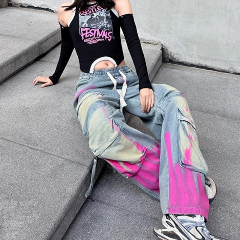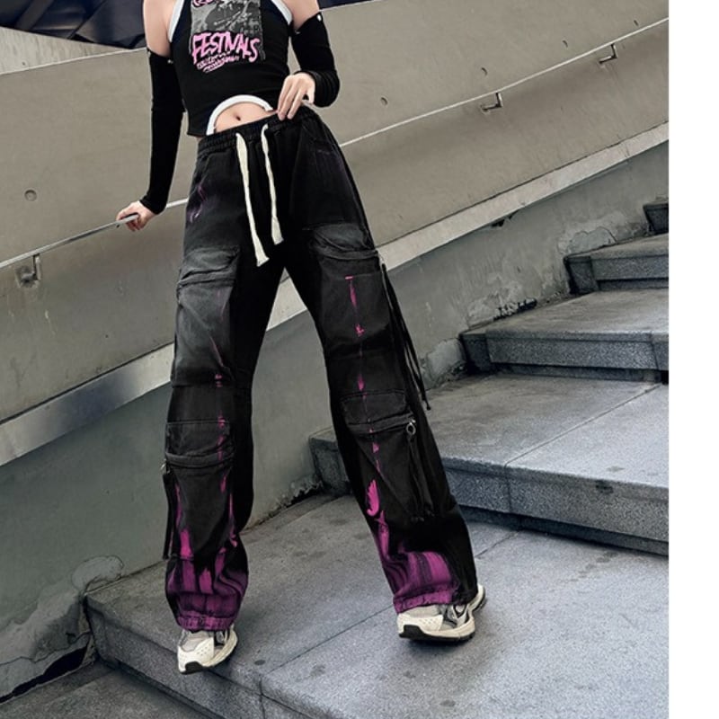 ジッパーポケット付き ワイド ドローストリング パンツ 2color PT0462
