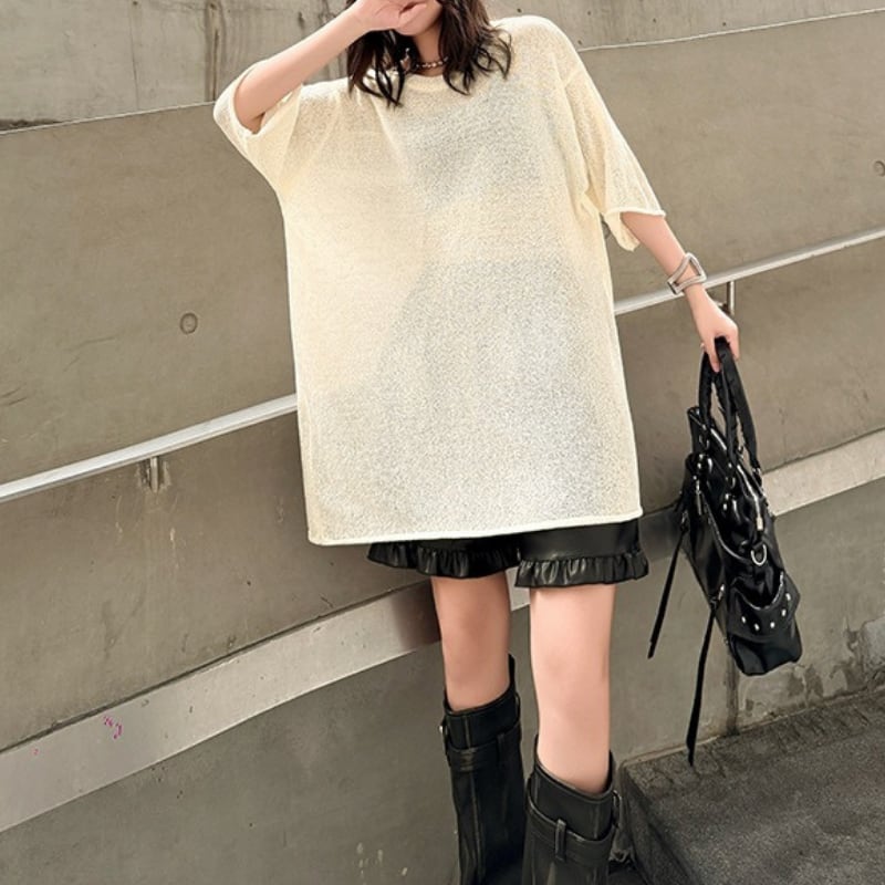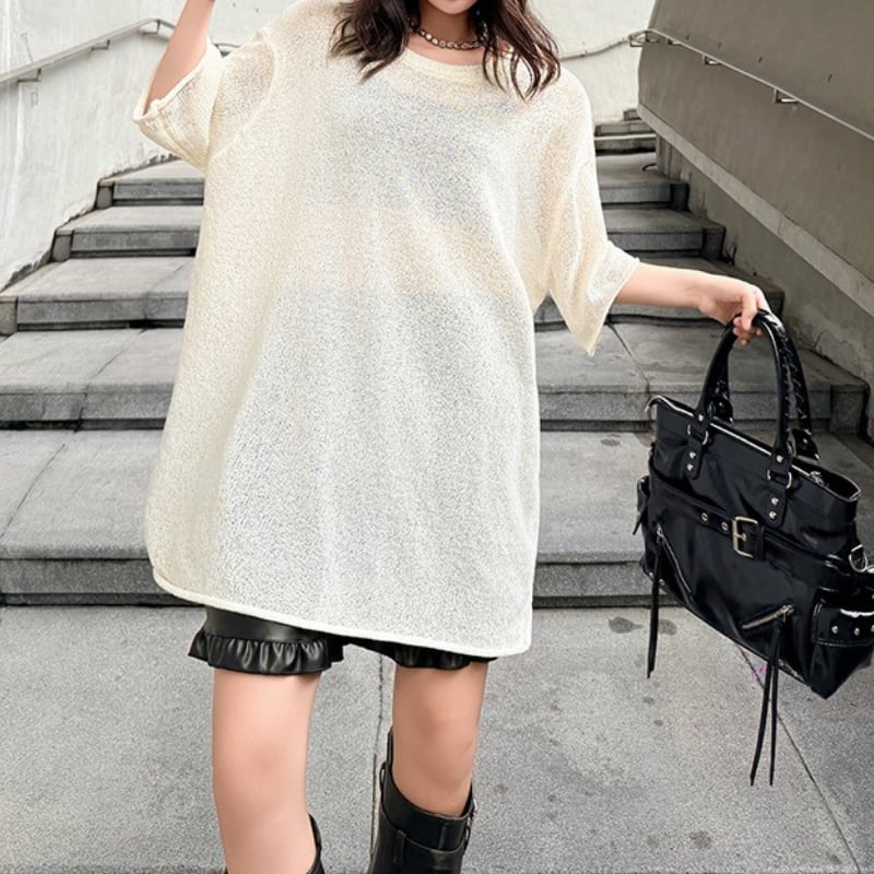 半袖 オーバーサイズ ヒップ丈 トップス 2color PU0498