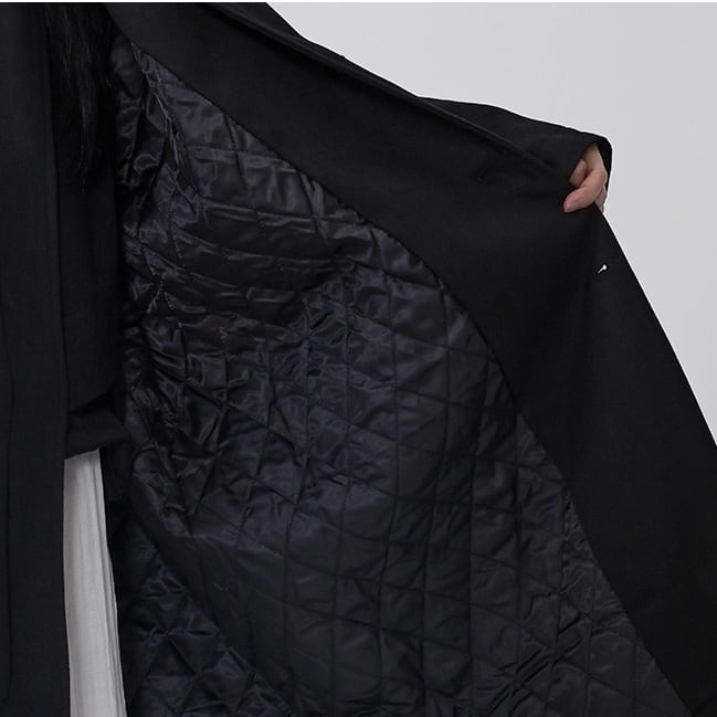 コートの中に重ねるアイテム次第で、オンオフどちらにも対応できる一着となります。