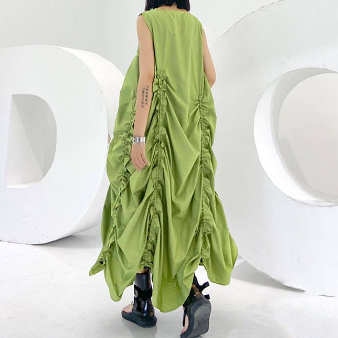 シャーリングマキシノースリーブワンピース ON0447