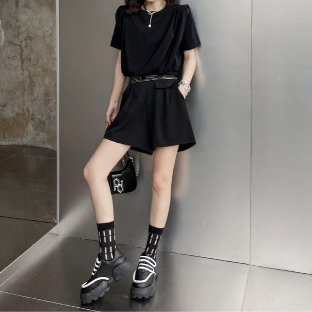 スポーティーなトップスやクロップトップと組み合わせれば、