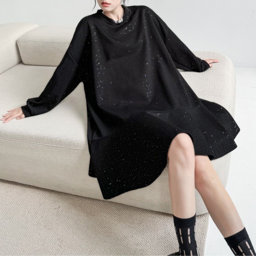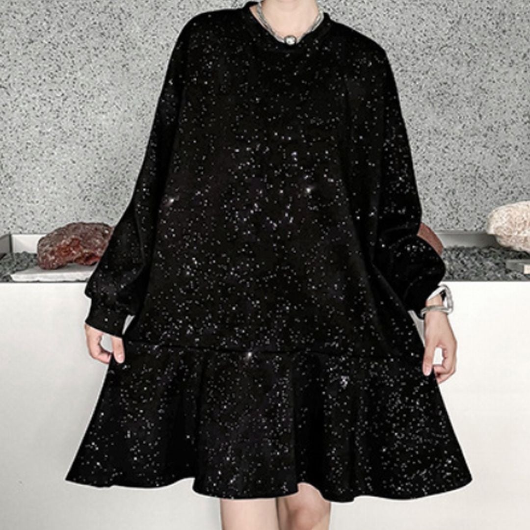 スパンコールが輝くAラインミニワンピース。