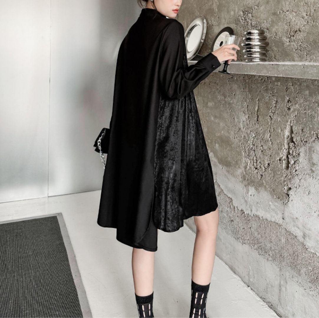 MIX素材のベルベット裾が個性的なイレギュラーミニ丈ワンピース。