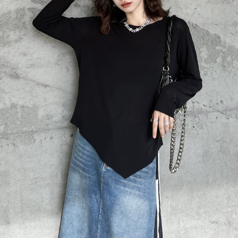 アシンメトリーラウンドネックルーズシャツ BL0401
