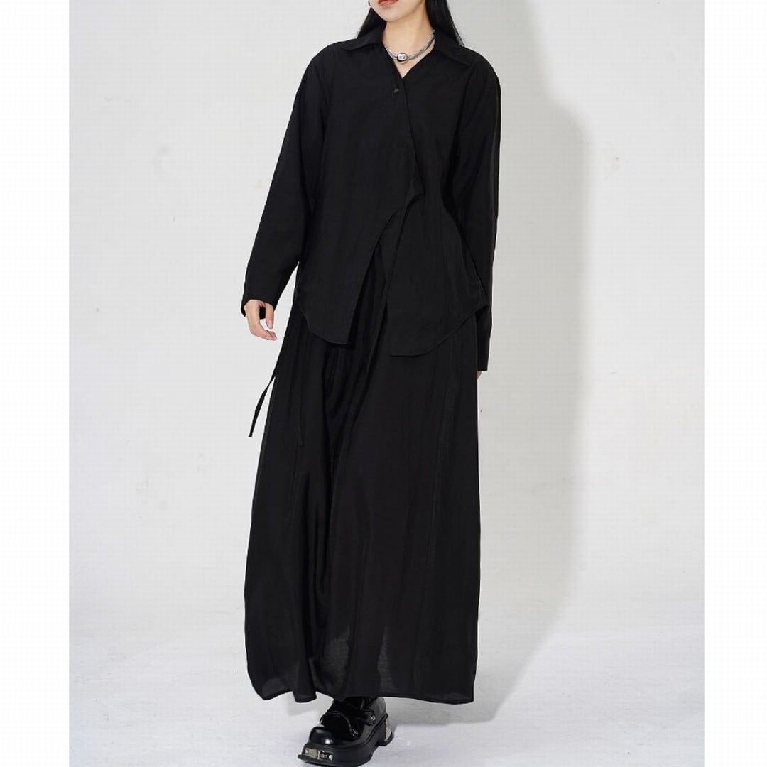 Vネック襟付き長袖シャツ&ロングフレアスカート ST0155