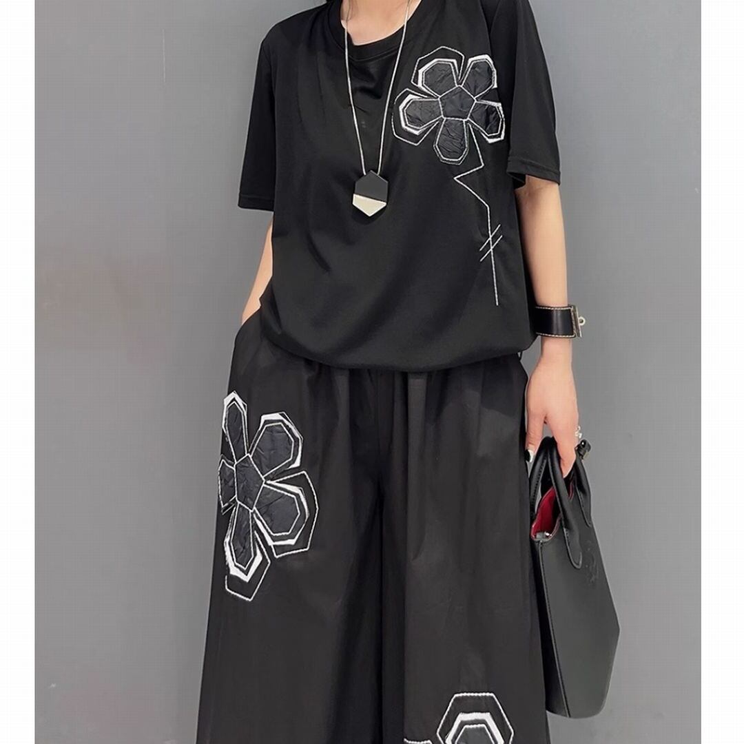 花柄Tシャツワイドパンツカジュアルスーツ ST0156