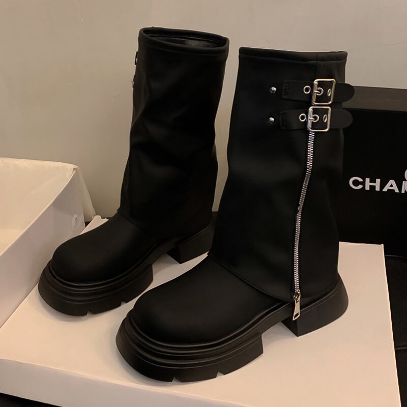 厚底サイドジッパーブーツ ロング丈・ショート丈 SH0114