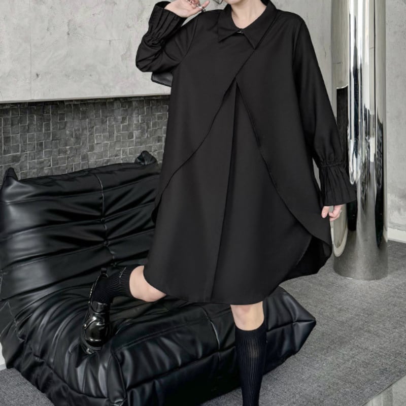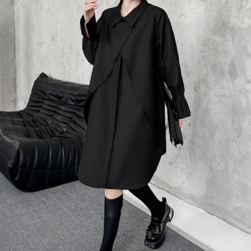シンプルなパンツやスリムなボトムスと合わせて、モード感あるスタイルを楽しめます。